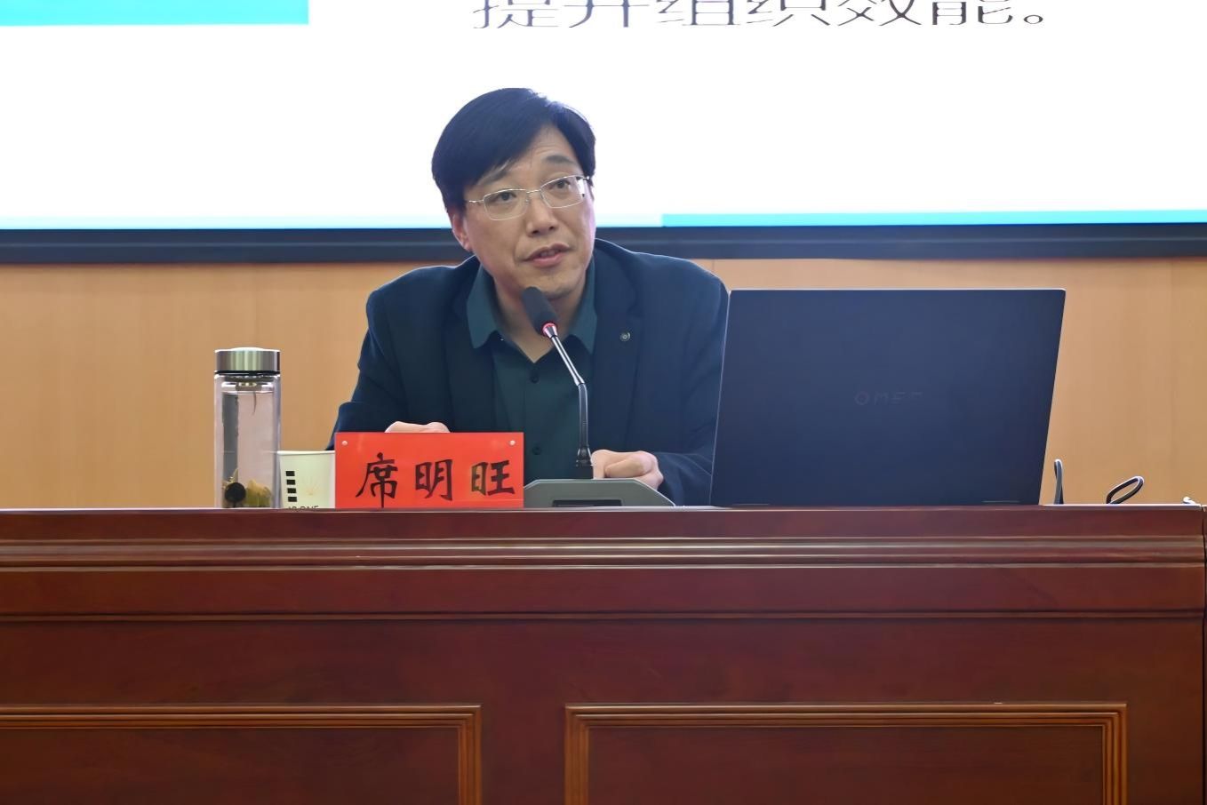 席明旺以“赋能成长,引领未来”为主题,系统阐述了新时代学生干部必备的政治素养、道德品质、组织能力、沟通能力、创新能力和团队协作六大核心素养,强调学生干部要坚定政治立场,深学细悟党的创新理论,筑牢思想根基;要践行社会主义核心价值观,厚植服务同学的奉献情怀,以责任担当诠释青春使命。席明旺分享了“反思与总结”“平衡与调节”两大成长方法,鼓励学生干部通过建立工作日志、定期自我评估沉淀经验,科学规划时间、学会压力管理,在学习与工作中实现双向提升。