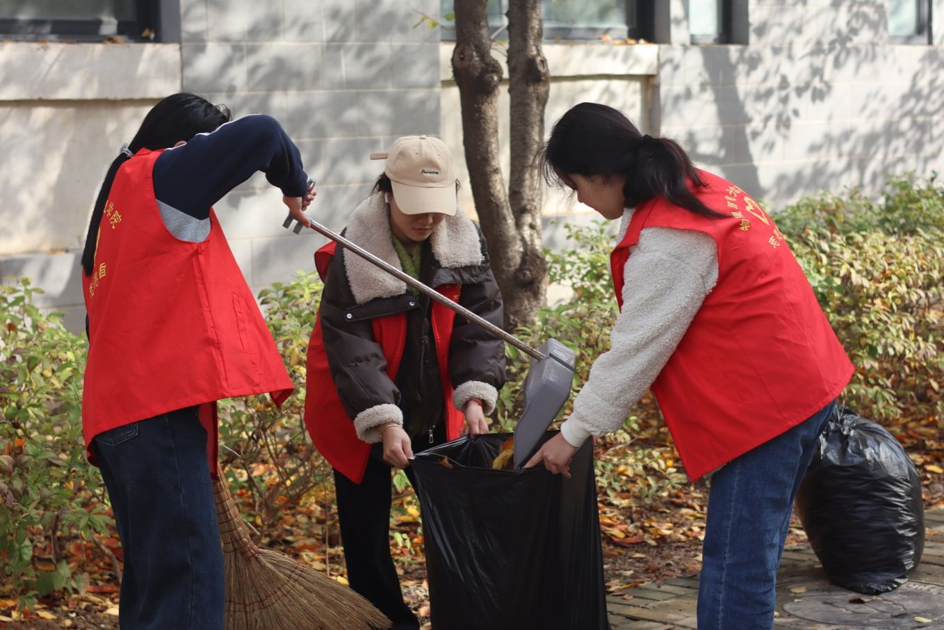 11月8日,40余名志愿者开展落叶清扫活动。志愿者们手持扫帚、耙子等工具,分工协作,对书院北侧道路及内院落叶进行全面清扫,并统一装袋清运,高效清理了堆积落叶,让书院及周边环境焕然一新,赢得书院师生的一致好评。