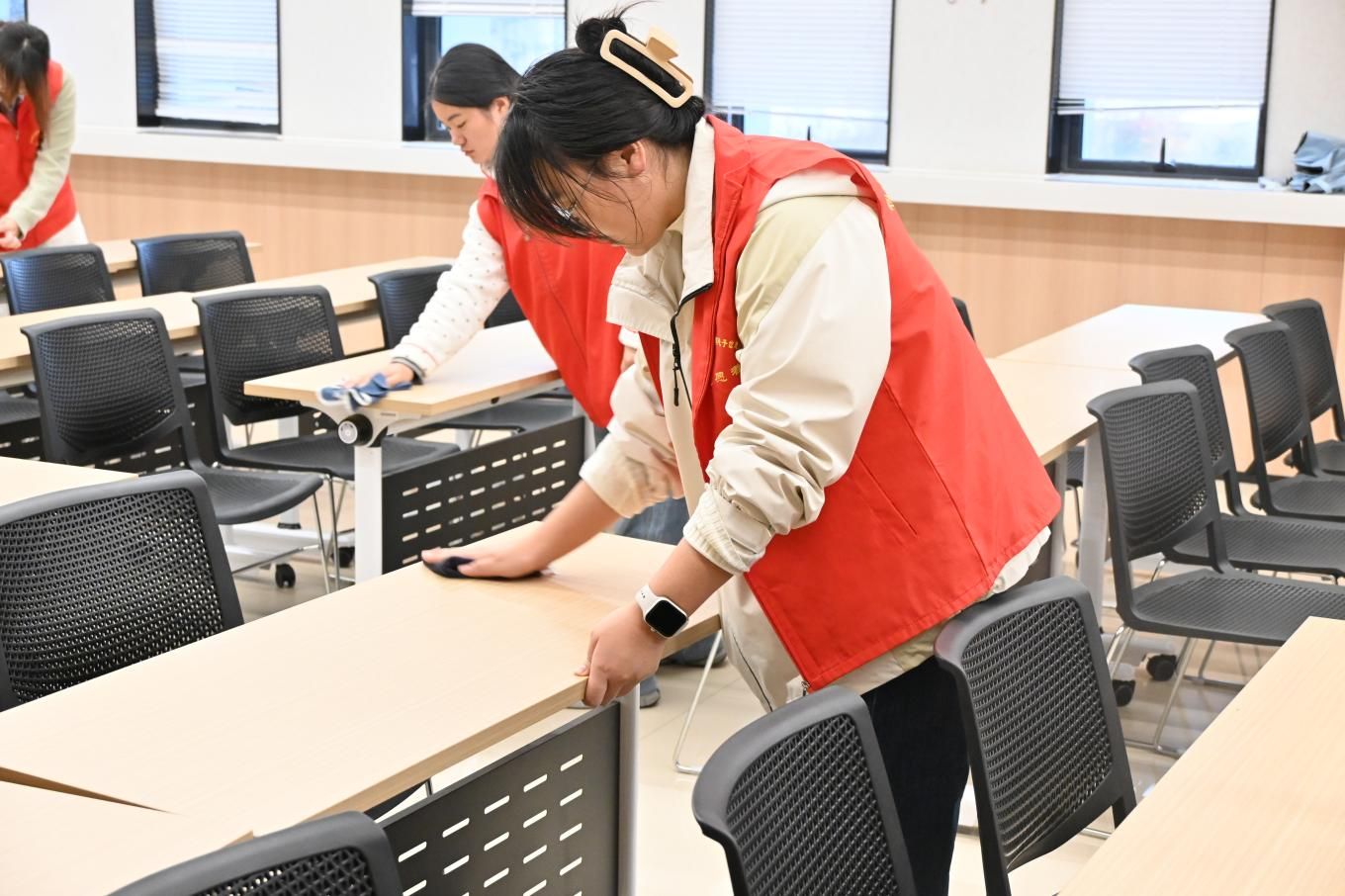 11月8日至12日下午,20余名志愿者开展“打扫书院,你我同行”功能室打扫活动。志愿者们身穿红色马甲,一丝不苟,不放过每一个卫生死角,为同学们营造了干净整洁的学习环境。
