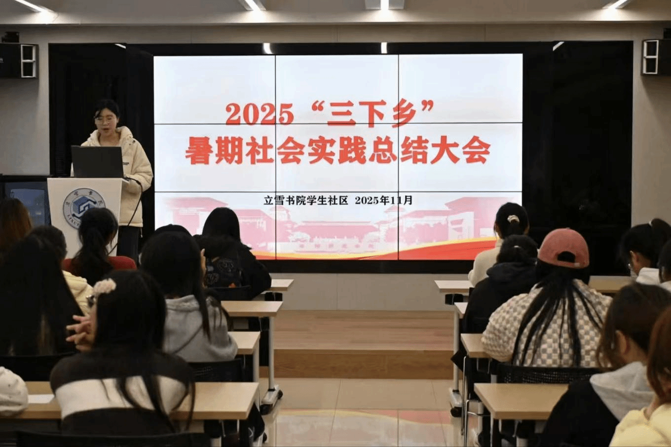 为总结实践经验,分享成长收获,11月23日下午,立雪书院学生社区在立雪讲堂组织开展“三下乡”暑期社会实践总结大会。青志部负责人王甜甜主持,全体实践队员参与。
