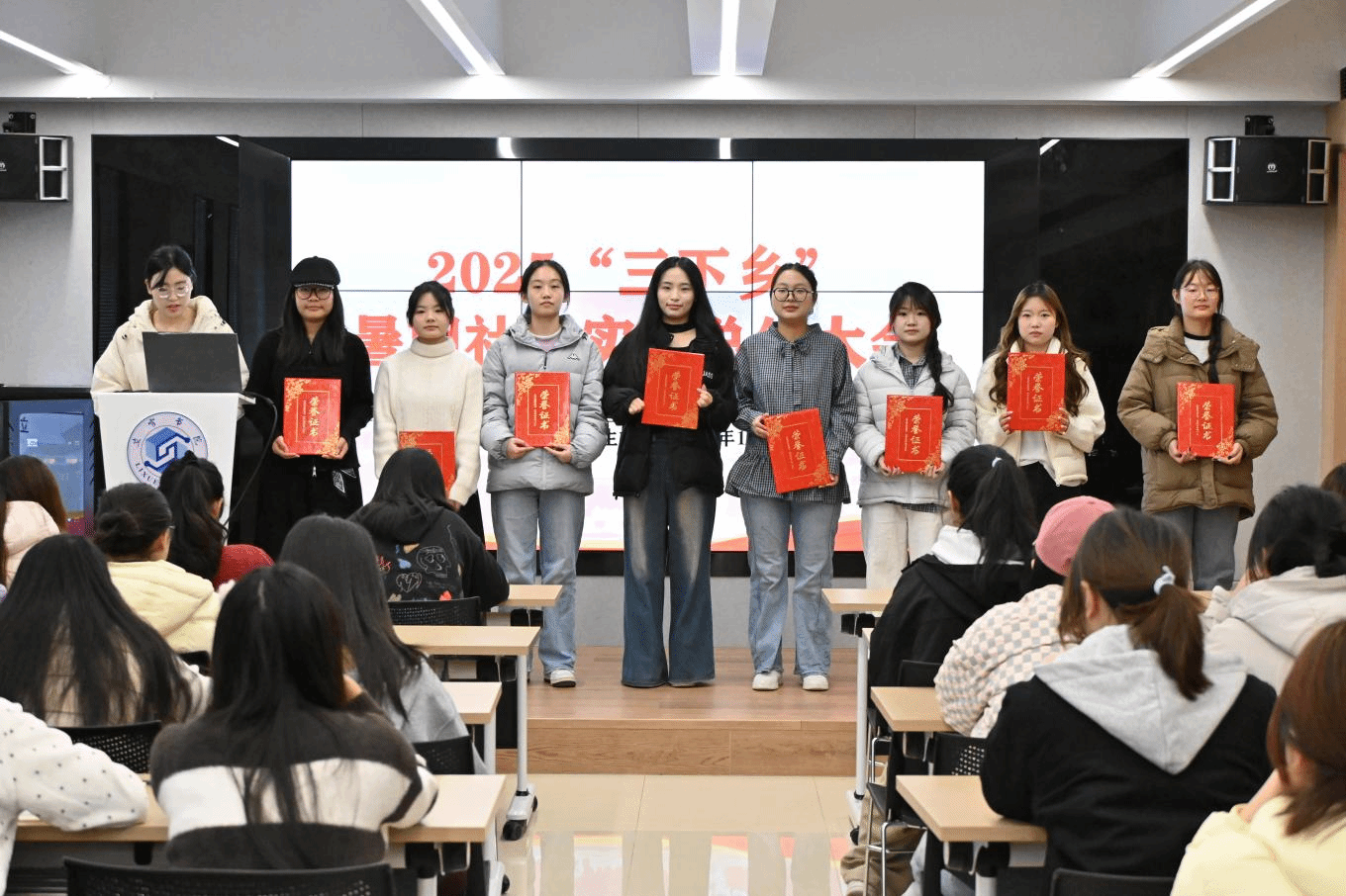 8位队员聚焦乡村青少年科学启蒙,围绕“青春点亮童心,探索科创奇缘”物化同盟暑期社会实践队、“启梦童心,科普同行”暑期社会实践队、“青春护航童心,探索科学秘境”化儿朵朵暑期社会实践队三支特色队伍,回顾了从前期筹备、课堂互动到调研宣传的全过程,再现了扎根乡村的服务经历,充分彰显了青年学子的责任担当。现场掌声不断,气氛热烈。