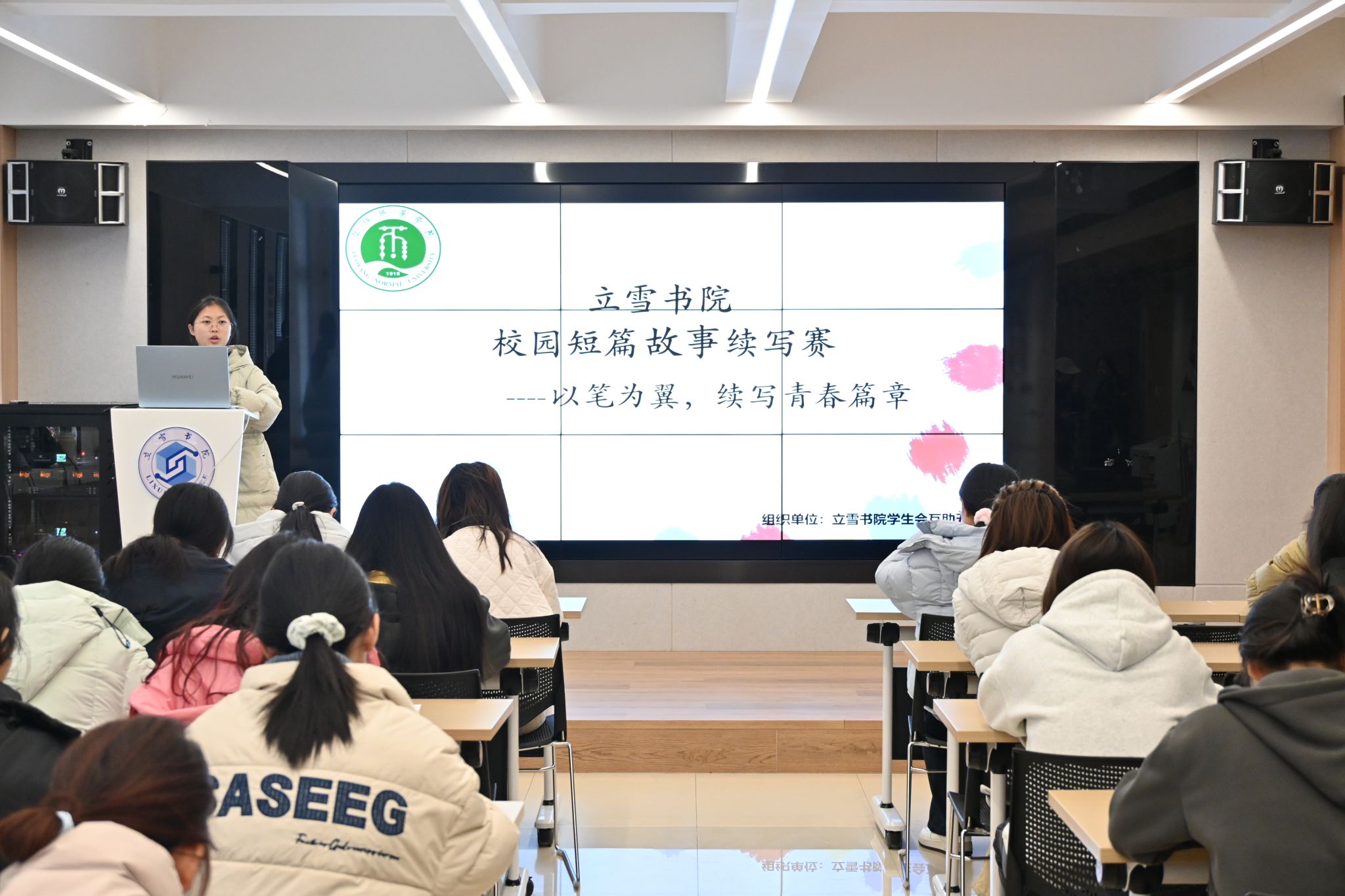 为丰富校园文化生活,搭建展示青春和创意的平台,12月7日上午,立雪书院学生社区在立雪讲堂举办“以笔为翼,续写青春篇章”校园短篇故事续写赛。活动由立雪书院学生社区学生会互助五组方玲慧主持,书院50余名学生参与。