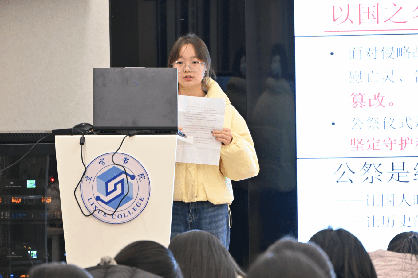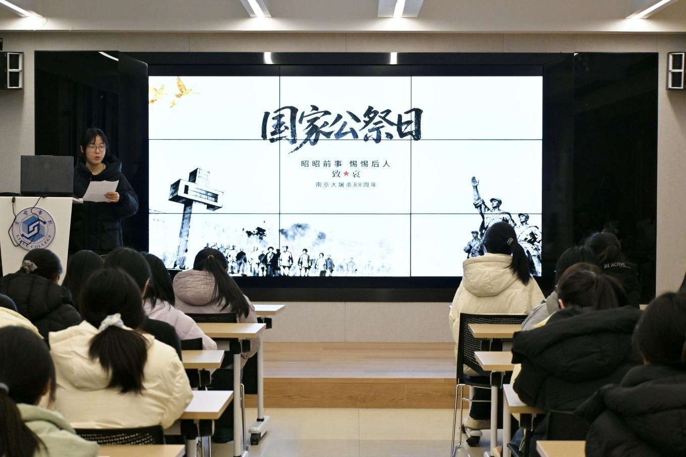 12月13日,时值南京大屠杀死难者国家公祭日,立雪书院学生社区在立雪讲堂举办“铭记历史,珍爱和平”主题演讲比赛。书院十二名学子参赛,多名学子到场聆听。