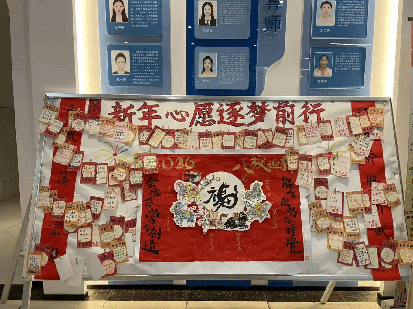 书院大厅的“新年心愿,逐梦前行”活动吸引了众多学生参与。同学们在便笺上认真写下对自己的成长期许、对书院的美好祝福、对新年的热切憧憬,认真粘贴到主题展板上。一张张便签汇聚成满载希望的“愿望墙”,既定格了学子们的真挚心声,也让大家在分享与期盼中凝聚起逐梦前行的奋进力量。