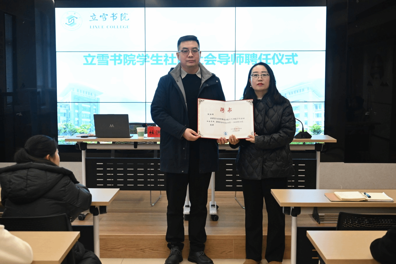 孙江涛代表书院全体师生,对杜洪峰的到来表示热烈欢迎,并简要介绍了他的专业背景、医学履历及科研成就。随后,李倩为杜洪峰颁发社会导师聘任证书。