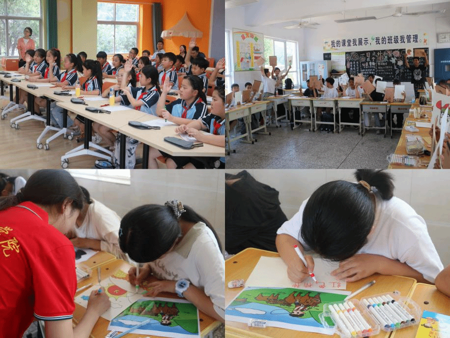 实践队紧扣“理论铸魂、情景育人、实践赋能、帮扶暖心”主线,创新采用党史问答启智、情景剧演绎共情、理论宣讲铸魂、红色绘画抒怀、温暖帮扶聚力等多元形式,为师生打造沉浸式红色文化课堂。这场融合红色文化、廉洁教育与爱心帮扶的教育实践,以“理论宣讲+情景体验+红色创作+帮扶关怀”的立体化模式,让红色基因在互动体验中浸润童心,让革命精神在生动诠释中根植少年心田。