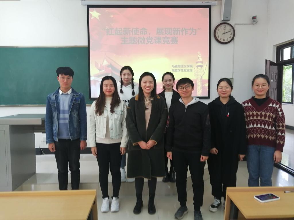 为更好的贯彻落实习近平新时代中国特色社会主义思想,创新党课形式,我院于11月4日在A3-104教室组织举行了以“扛起新时代 展现新作为”为主题的微党课比赛。