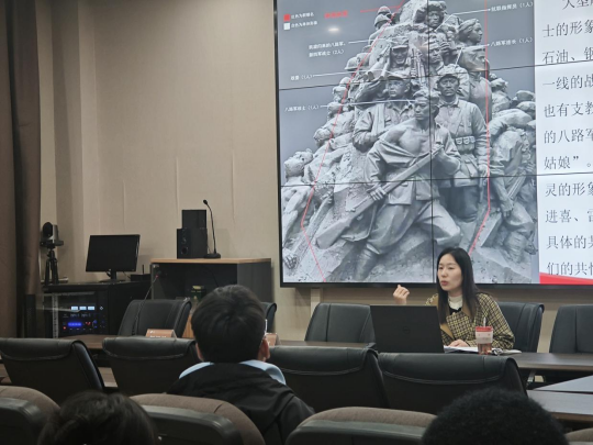 雕塑是文明的体现,美术史上同样少不了红色雕塑。王新宇老师先后介绍了中国共产党历史展览馆内的《旗帜》《信仰》《攻坚》《伟业》等红色经典雕塑,让同学们从这些雕塑中深深的感受到革命志士的民族精神和爱国主义精神,感受中国共产党的辉煌经历和艰辛历程。她讲到,在这个充满机遇与挑战的时代,需要重温党史,从中学习和感悟,汲取智慧和力量,从而为实现中华民族伟大复兴的中国梦注入前进的动力。