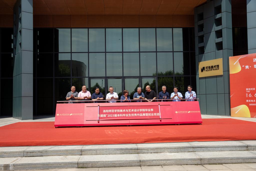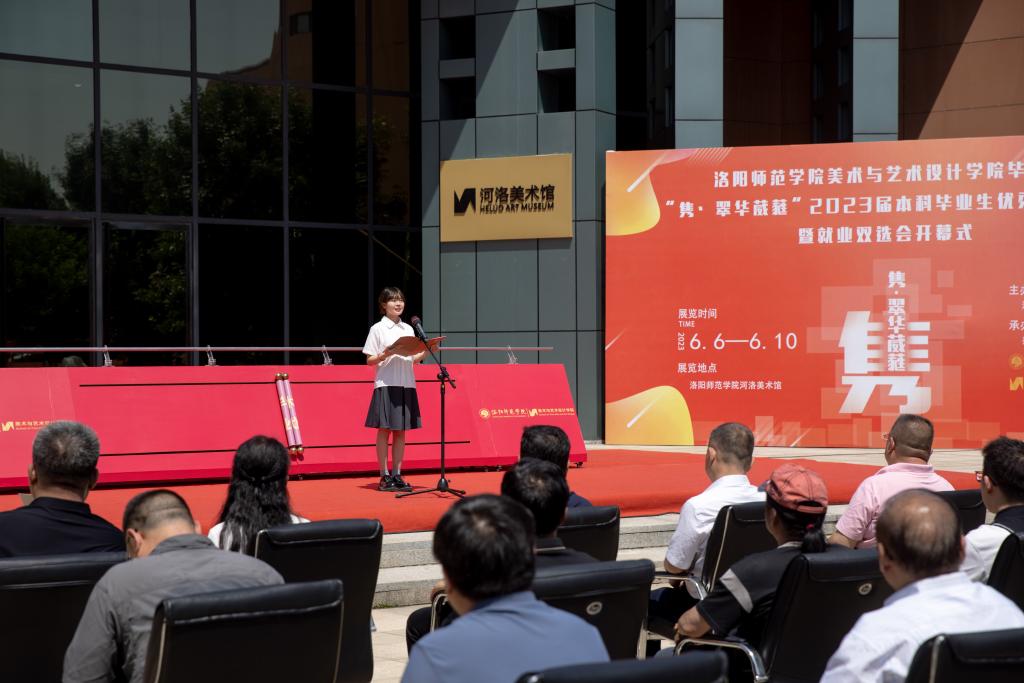 6月6日上午,洛阳师范学院美术与艺术设计学院在河洛美术馆鸿都广场隆重举行“隽·翠华葳蕤”2023届本科毕业生优秀作品展暨就业双选会开幕仪式。全国人大代表、中国国家画院研究员、洛阳博物馆名誉馆长、洛阳市文联名誉主席王绣女士,中国人民革命军事博物馆创作员、中国美术家协会中国画艺术委员会副主任、中国艺术研究院研究员陈钰铭先生,洛阳师范学院党委副书记宋文献,党委副书记、工会主席李晓彦,副校长张运礼,各党政职能部门、院系负责人,以及师生代表出席开幕仪式。开幕仪式由美术与艺术设计学院院长苟彬主持。