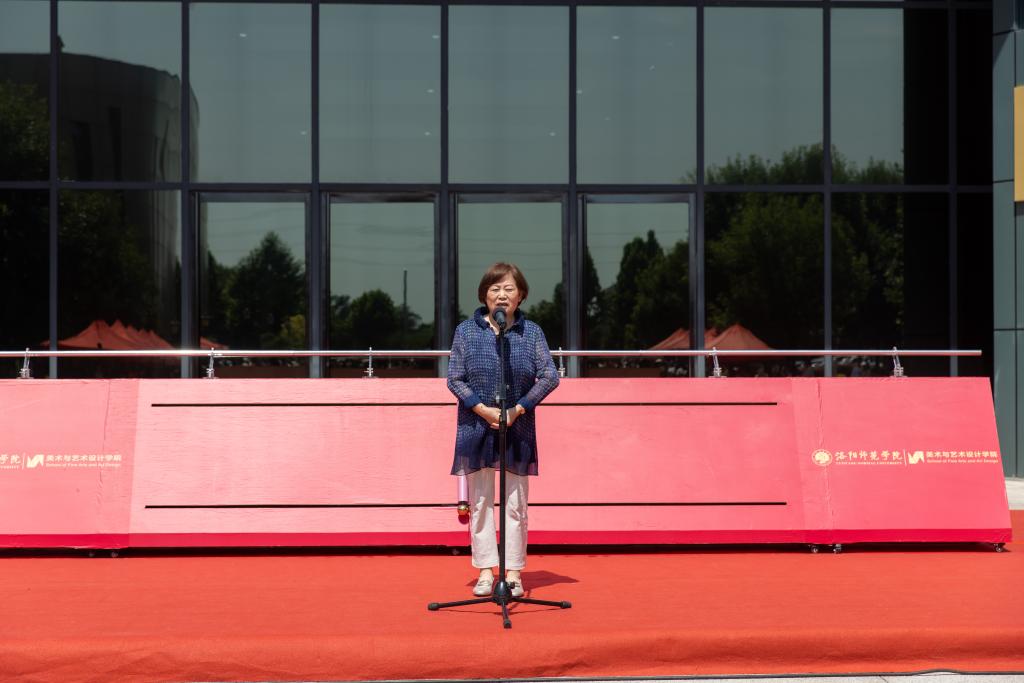 任丽娟在讲话中表示,此次展览充分体现了师生艺术创作的理念,展现了学院在人才培养、教学质量以及学生美育等各方面取得的显著成果,希望同学们保持初心、不负韶华,以美术和设计的力量创造美好生活,以勤劳双手勾画绚烂明天,以高尚的情操和聪明才智奉献社会。