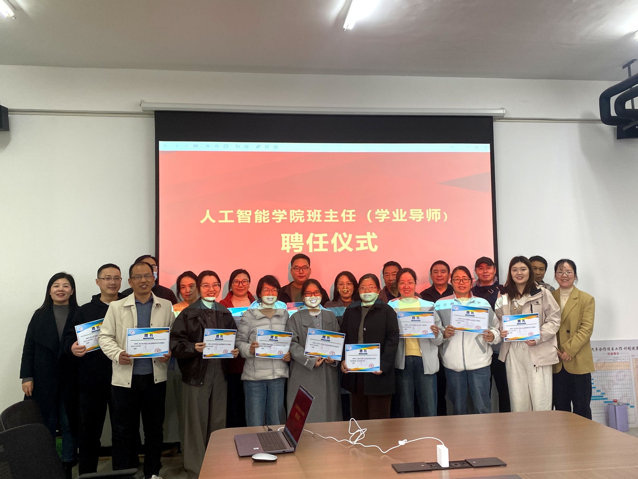 随后,朱玉晓为新聘班导师颁发聘书并合影留念。