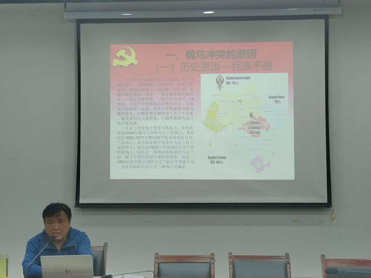 开班仪式后,陈书记以“俄乌冲突”为主题讲授首场党课。陈书记从俄乌冲突的原因、实质、影响等方面对俄乌冲突进行了深入的分析。他表示,世界和平不是喊出来的,而是奋斗出来的,我们生在一个和平的国家,更应该铭记历史,勇敢地迎接挑战。此外他还着重讲述了此次冲突对我国的警示,并强调了作为新时代大学生应具备的社会责任感和家国情怀,鼓励同学们刻苦学习,努力奋斗,争做新时代祖国的建设者和接班人。
