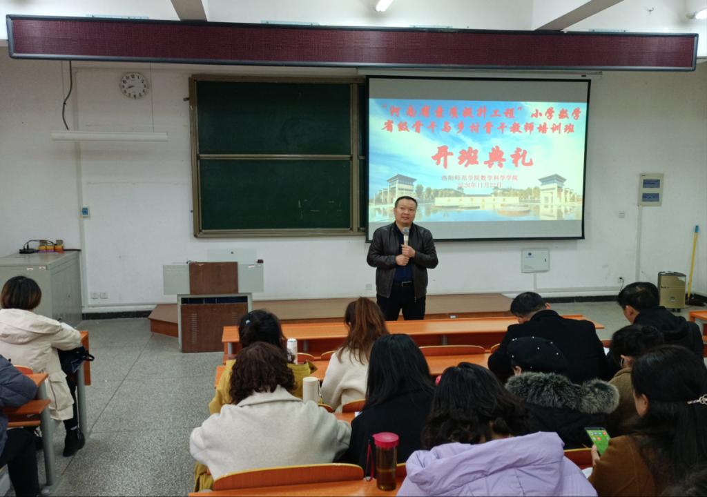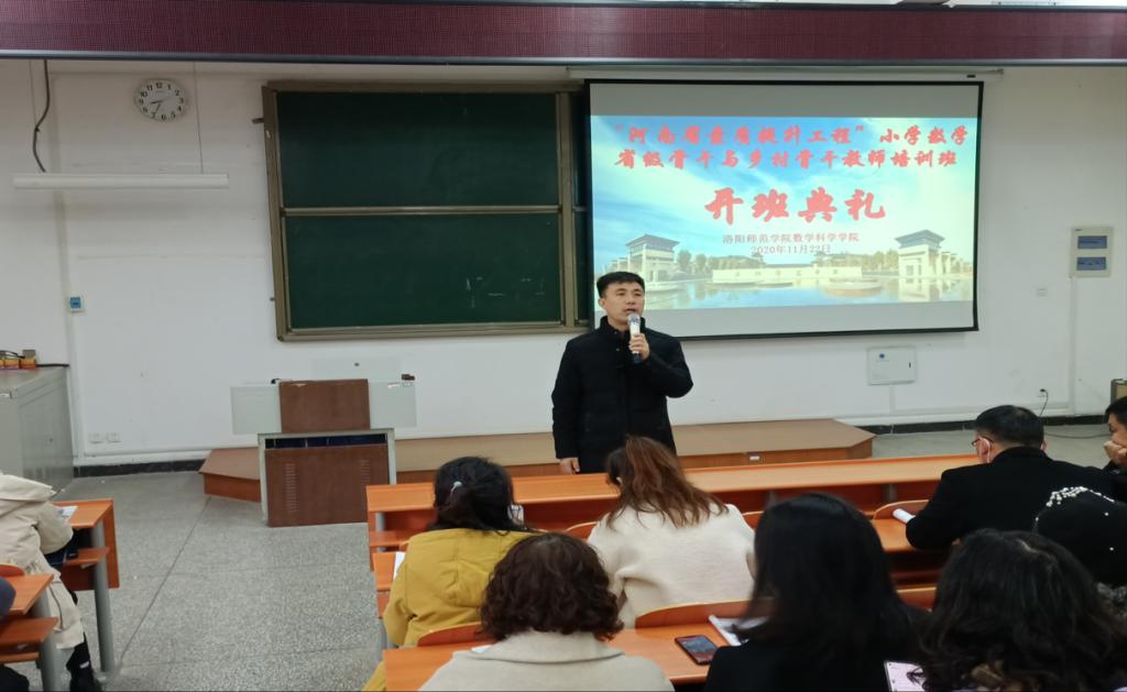 11月22日上午,我院举办了“河南省素质提升工程”小学数学省级骨干与乡村骨干教师培训班开班典礼,开班典礼于8:30在A10-103教室举行。数学科学学院党委书记董朝宗、数学科学学院省培办公室主任王众杰出席此次典礼。