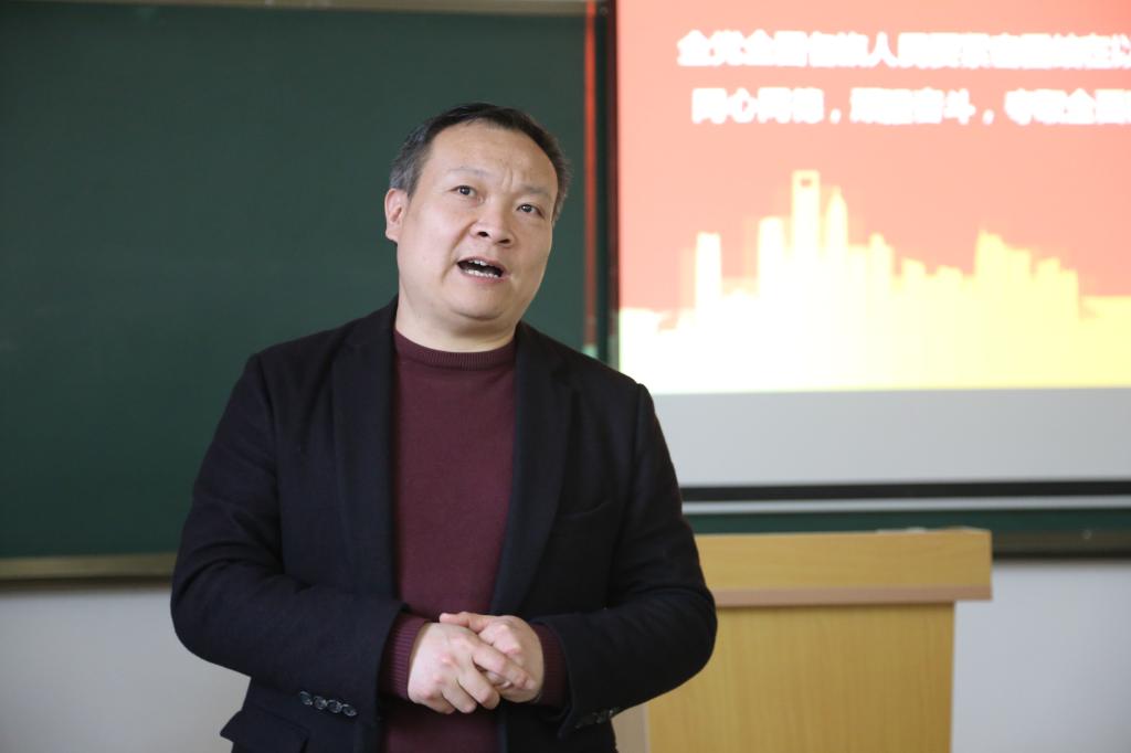 2020年10月26日-10月29日,中国共产党第十九届中央委员会第五次全体会议在北京举行,为推动教师学习宣传贯彻党的十九届五中全会精神,我院12月10日于数学楼A10—207开展十九届五中全会宣讲活动。该活动由我院党委书记董朝宗主持,马克思主义学院袁杰教授进行讲解,我院全体教师参加此活动。