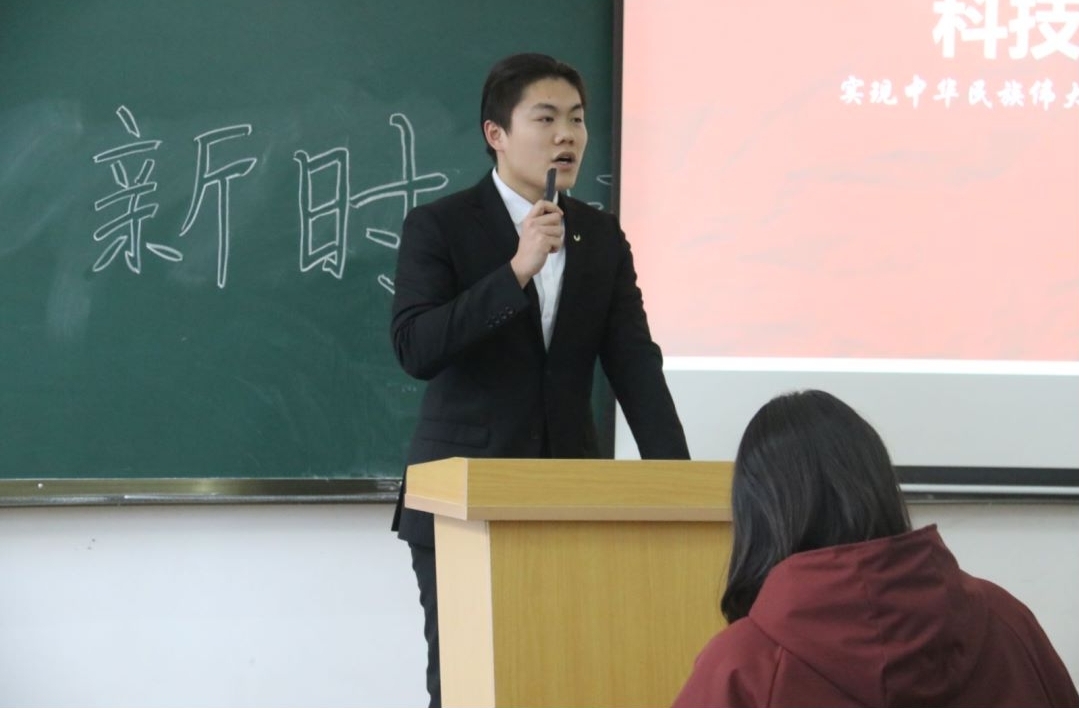 信息技术学院闫柯宇从自我管理层面发表个人观点,他指出应积极推进马克思主义最新理论成果中国化、时代化、青年化,着重强调同学们应充分重视自我管理的必要性。