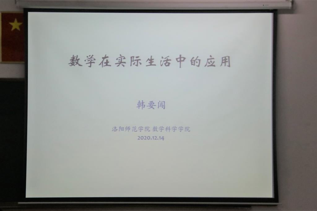 世界之大,无处不有数学的重要贡献。为培养学生的数学意识以及运用数学知识解决实际问题的能力,提高学生数学素质以及对数学的兴趣,12月14日下午,我院韩要闯博士于A10-105为同学们开展“数学在实际生活中的应用”主题讲座。