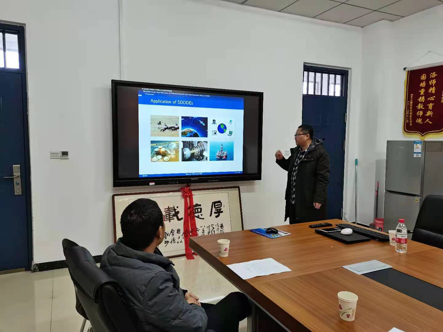 12月12日,应数学科学学院与研究生与学科建设处邀请,郑州大学裴利军教授作了题为《状态依赖时滞微分方程理论及应用的新进展》的学术报告。报告会在数学楼A10-413举行,数学科学学院部分教师和研究生聆听讲座。