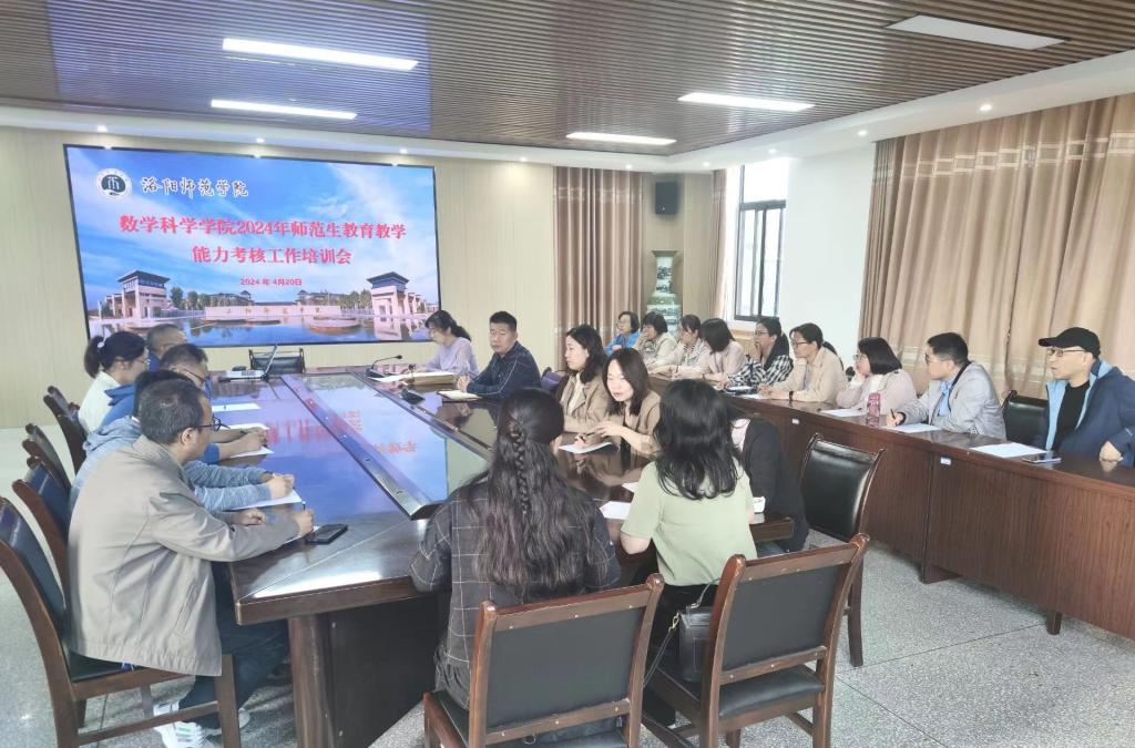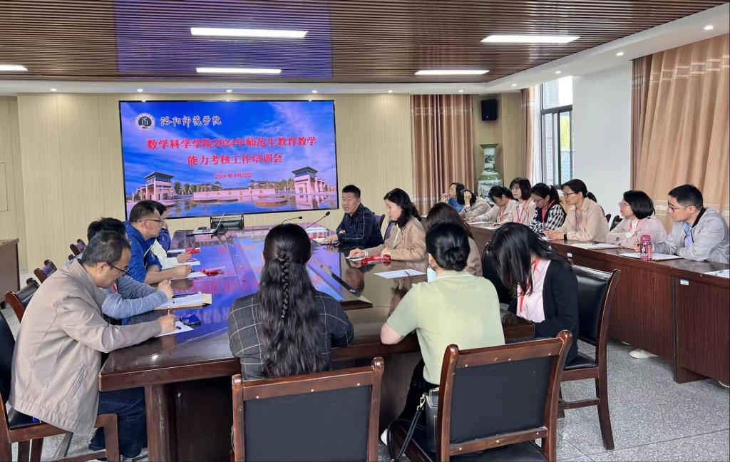为迎接本科教育教学审核评估,扎实开展师范生教育教学能力培养,4月20日上午,我院召开2024年师范生教育教学能力考核工作培训会。院长刘迎照、校外评审专家、各组评审老师、考核组相关工作人员参加会议,会议由副院长张丽主持。