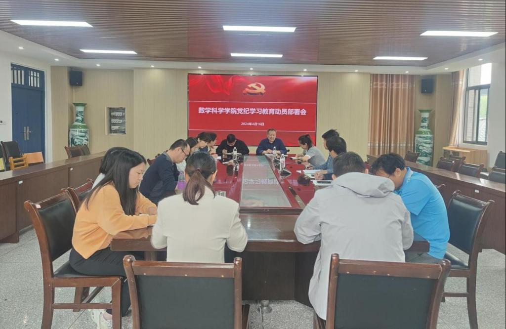 按照学校党委安排部署,4月16日上午,数学科学学院党委在数学楼317会议室召开党委扩大会议,研究部署我院党纪学习教育工作,党委委员、班子全体成员、支部书记、各系主任副主任参加会议。