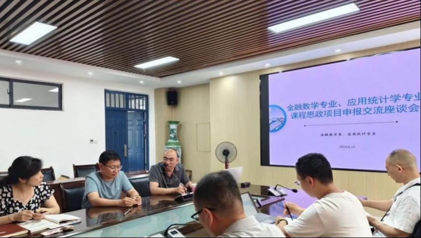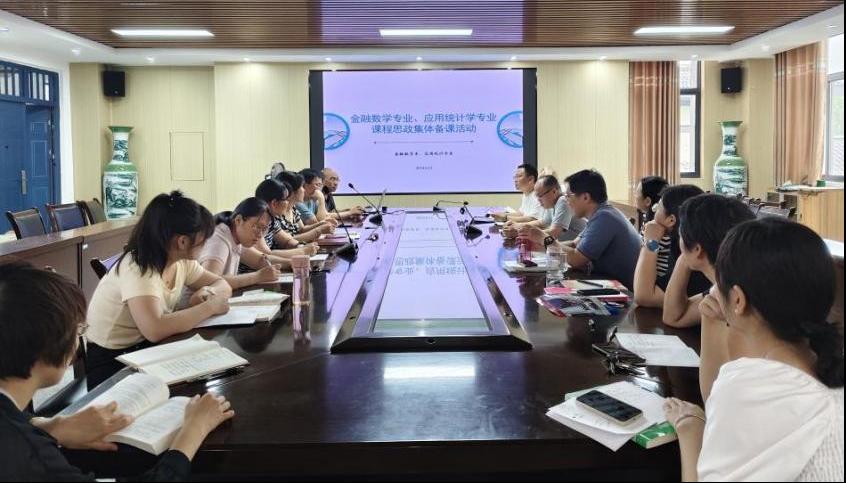为深入贯彻立德树人根本任务,充分发挥课堂育人功能,促进课程思政与专业教学的深度融合,6月13日下午,我院邀请马克思主义学院思政课指导教师王现伟在A10-317开展课程思政“手拉手”教学研讨活动,学院副院长张丽及金融数学系、应用统计学系全体老师参加。