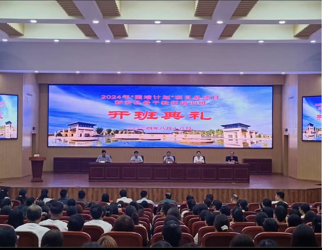 8月12日上午,国培计划(2024)——新安县骨干教师培训项目开班典礼于洛阳师范学院G1-112教室举行。洛阳师范学院副校长曹玉涛,新安县人民政府副县长孙宏悦,洛阳师范学院数学科学学院副院长余天虎等领导出席本次典礼。