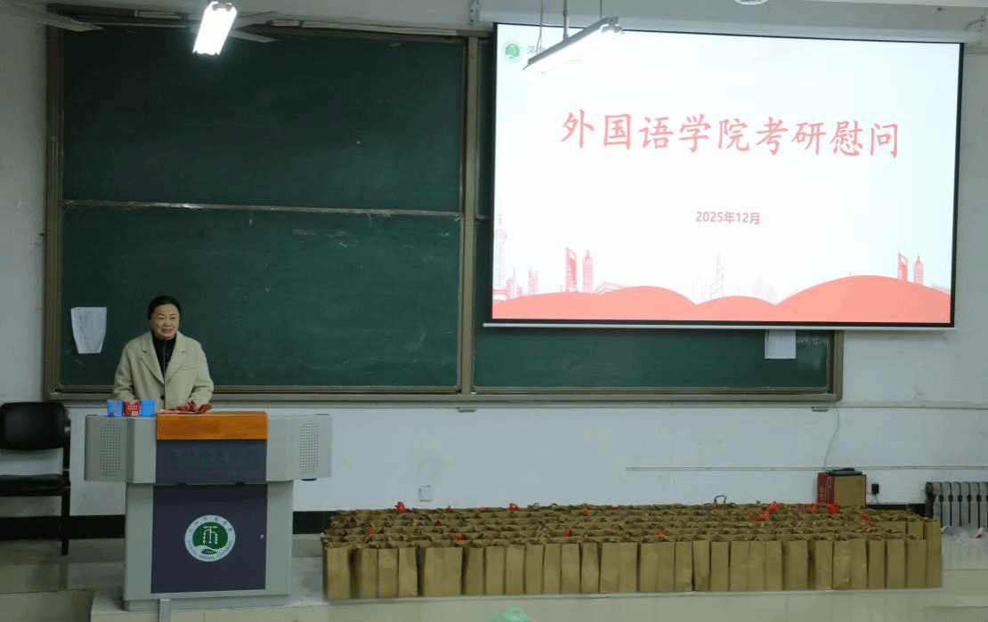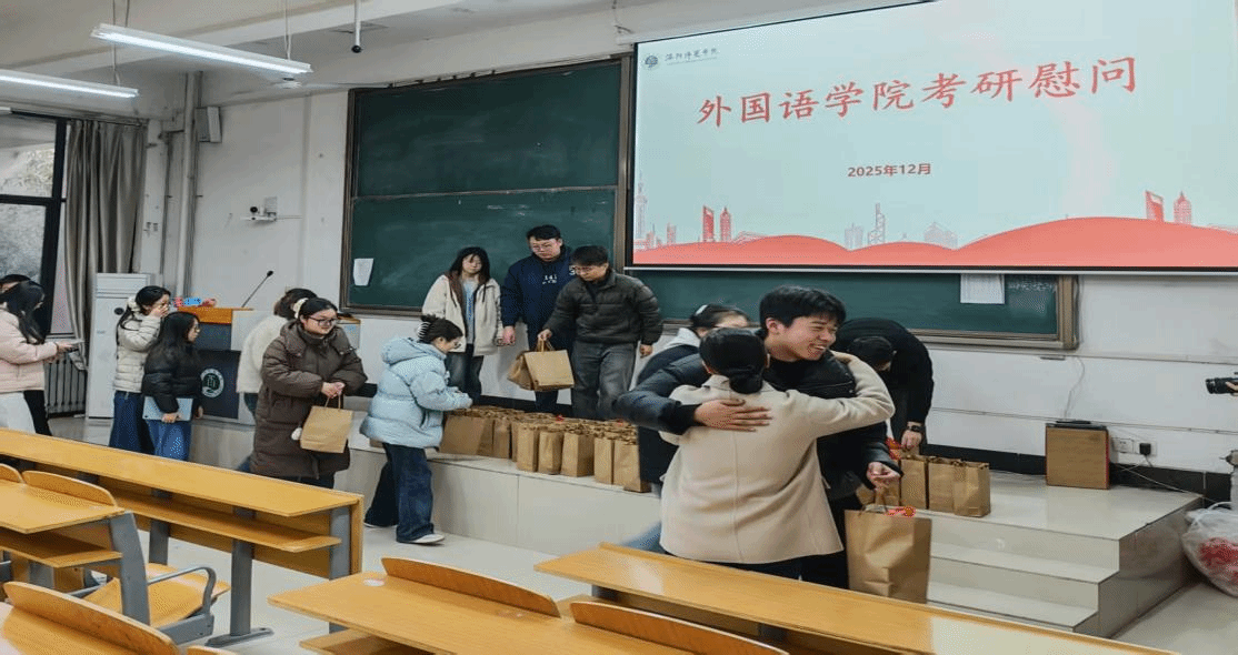 寒冬已至,考研在即。为缓解考研学子备考压力、传递学院关怀,外国语学院于12月4日下午在A1-101教室开展考研慰问活动,为逐梦青年送上暖心祝福与实用物资。学院领导班子、全体辅导员和全体考研学生出席本次活动。