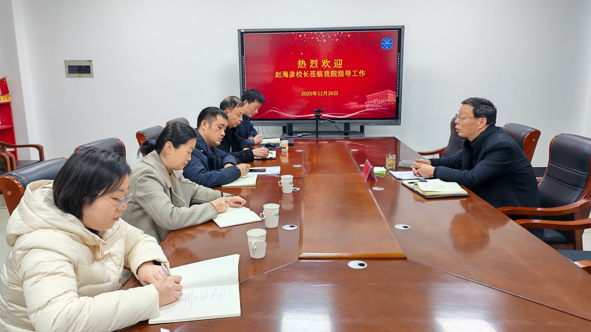 赵海彦对学院一年来推动党风廉政建设与事业发展深度融合的实践成果予以充分肯定。他指出,廉政建设既是学院发展的底线支撑,更是推动高质量发展的重要保障。要持之以恒涵养风清气正的政治生态,将廉政建设成果转化为干事创业的强大动力;要持续完善制度体系,扎紧廉政风险防控的制度笼子;要坚决纠治形式主义、官僚主义,树立务实高效的工作作风,切实为师生办实事、解难题;要密切关注师生思想动态,做到风险早发现、早处置,坚决守住政治安全、廉洁建设与校园稳定的底线;要以廉政建设护航事业发展,紧扣2025-2028年关键发展期,抢抓硕士学位点建设、学科专业升级的机遇,科学规划学科布局,深化校内外交流合作,积极争取各级项目资源,为学院高质量快速发展,为学校更名大学、新增博士学位授予单位“双攻坚”筑牢坚实基础。
