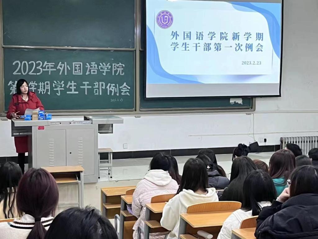 为进一步加强学院生干部队伍建设,更好地开展新学期团学工作,我院于2月23日中午在学院101教室召开新学期学生干部工作会议。学院团委书记赵娟娟、全体辅导员老师及全体学生干部参加了会议。会议由赵娟娟主持。