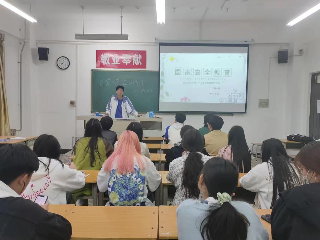 广泛开展总体国家安全观教育,切实营造浓厚的国家安全教育氛围。组织师生“同上一堂国家安全教育课”,通过中国大学生在线网站学习国家安全教育教学视频;通过主题班会、参赛作品评比、观看宣传片等方式进行反邪教警示教育活动和反诈骗宣传教育,普及安全教育,提高师生维护校园安全稳定的责任意识和防范能力;通过电子屏播放标语、展板制作等形式,加强师生国家安全宣传教育。