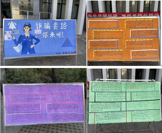 学院组织开展“诈骗套路你来听”电信诈骗案例征集活动,号召同学们分享自己及亲友被骗经历,共收集到诈骗案例投稿300多份。学院通过主题展板的形式将其中较为典型的电信诈骗案例进行书写展出,用真实、鲜活、完整的诈骗套路吸引广大师生驻足浏览观看学习,进一步提高了师生对电信诈骗套路的认识,增强了防诈识骗的能力。