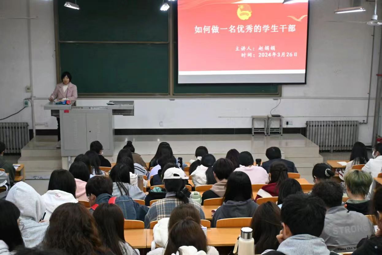 为了进一步提升我院团学干部的综合素养,增强团组织凝聚力,助力新学期团学工作的顺利进行,3月26日12时,我院2024年春季团学干部培训班开班暨首场讲座在学院101教室举行。学院全体团学干部参加,开班仪式由院团委书记赵娟娟主持。