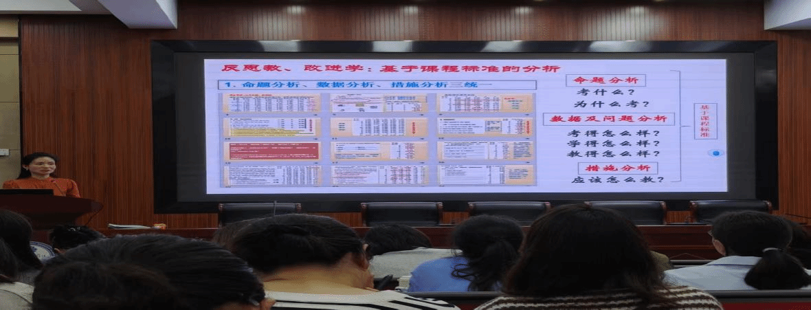 随后刘洁校长做了“基于核心素养的初中英语教学评一体化教学设计”的专题讲座。刘校长“腹有诗书气自华”,对课标理念侃侃而谈,将理论与教学实践紧密结合,分享的课例巧妙融入教学评一体化理念,始终聚焦学生核心素养的培养,从而搭建起理论与实践的桥梁。