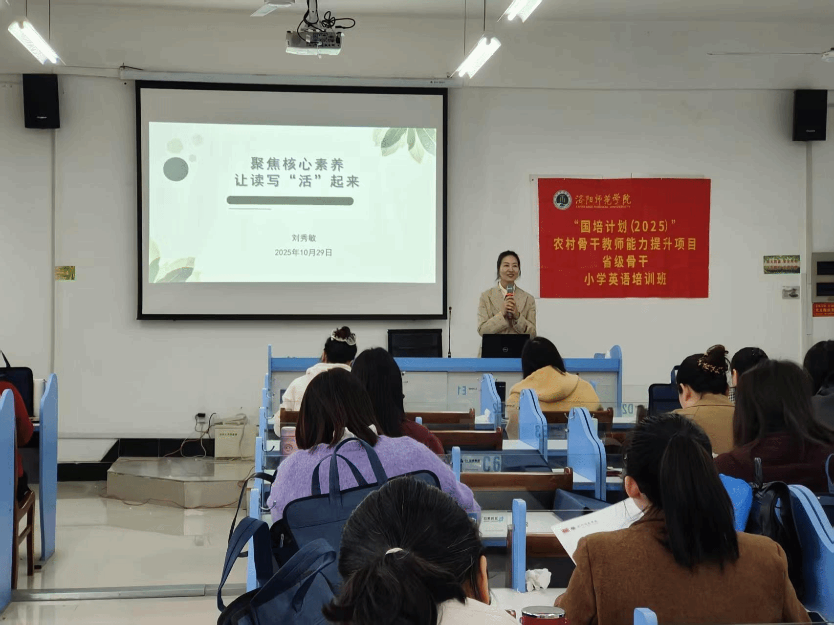 2025年10月29日上午,刘秀敏老师以《让读写教学“活”起来,聚焦核心素养》为题开展培训,围绕“读写教学”从四个方面为老师们传授了诸多实用方法。她强调,从学业质量角度,要关注学生读写的实际掌握情况,通过合理的评价方式,确保学生读写能力切实提升;从核心素养角度,读写教学不仅是教学生认字写字、读文写文,还要在过程中培养他们的文化意识、思维能力等;从课标要求角度,结合最新教学大纲,明确了读写教学的教学内容与教学方法,为老师们指明了方向;从课堂实践角度,分享了诸多可直接用于课堂的活动,如读写结合任务、小组合作写文章读故事等,让老师们知晓如何将读写教学变得有趣且有效。