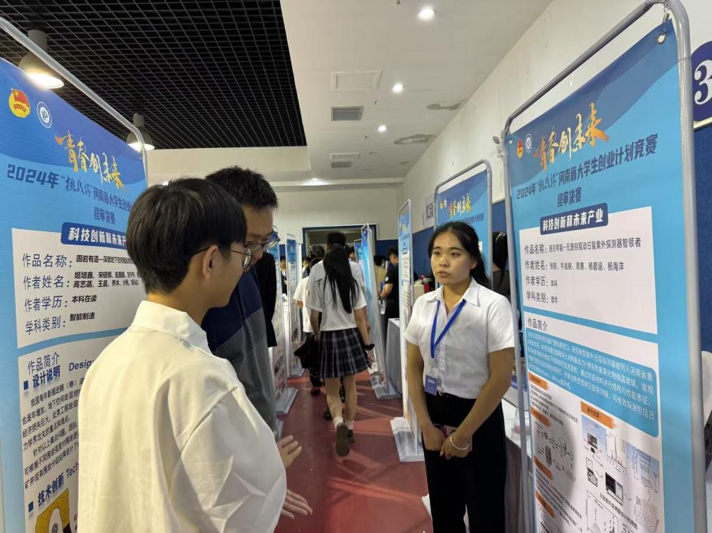 “科技报国不是口号,而是脚踏实地的突破。”这是张锐常挂在嘴边的一句话。大一时,她偶然接触到“日盲探测器”这一国家重大战略需求领域,得知我国在该领域长期受制于人的现状后,她毅然投身科研,立志为国家科技的自立自强贡献智慧和力量。在我校河南省电磁变换与探测实验室,她每天工作至深夜,在学院专业老师的指导下,从零开始学习光学材料制备、仪器操作和数据分析。初入实验室时,张锐连科研绘图的基本规范都不懂。为了绘制符合国际期刊标准的示意图,她反复观看教学视频,甚至将宿舍变成“第二实验室”。“字体必须用新罗马,字号必须精确到28磅”,这些细节她烂熟于心。历经上百次练习,她的科研制图从“班级垫底”逆袭为“团队模板”。2023年,她参与研究的《(NiCo)Se2纳米颗粒修饰NiCo-LDH纳米片分级结构用于高性能超级电容器》项目,在第十六届“挑战杯”省赛中一举斩获特等奖,并代表河南省征战国赛。面对全国353所高校的顶尖团队,她作为项目主汇报人,在酒店闭关三天三夜,将20分钟的答辩内容打磨到秒级精准,通过激烈角逐,最终荣获国家级二等奖,刷新我校历史记录。更令人瞩目的是,2024年1月,她以共一作者身份在国际著名期刊《Advanced Science》发表学术论文,并参与申请发明专利1项。