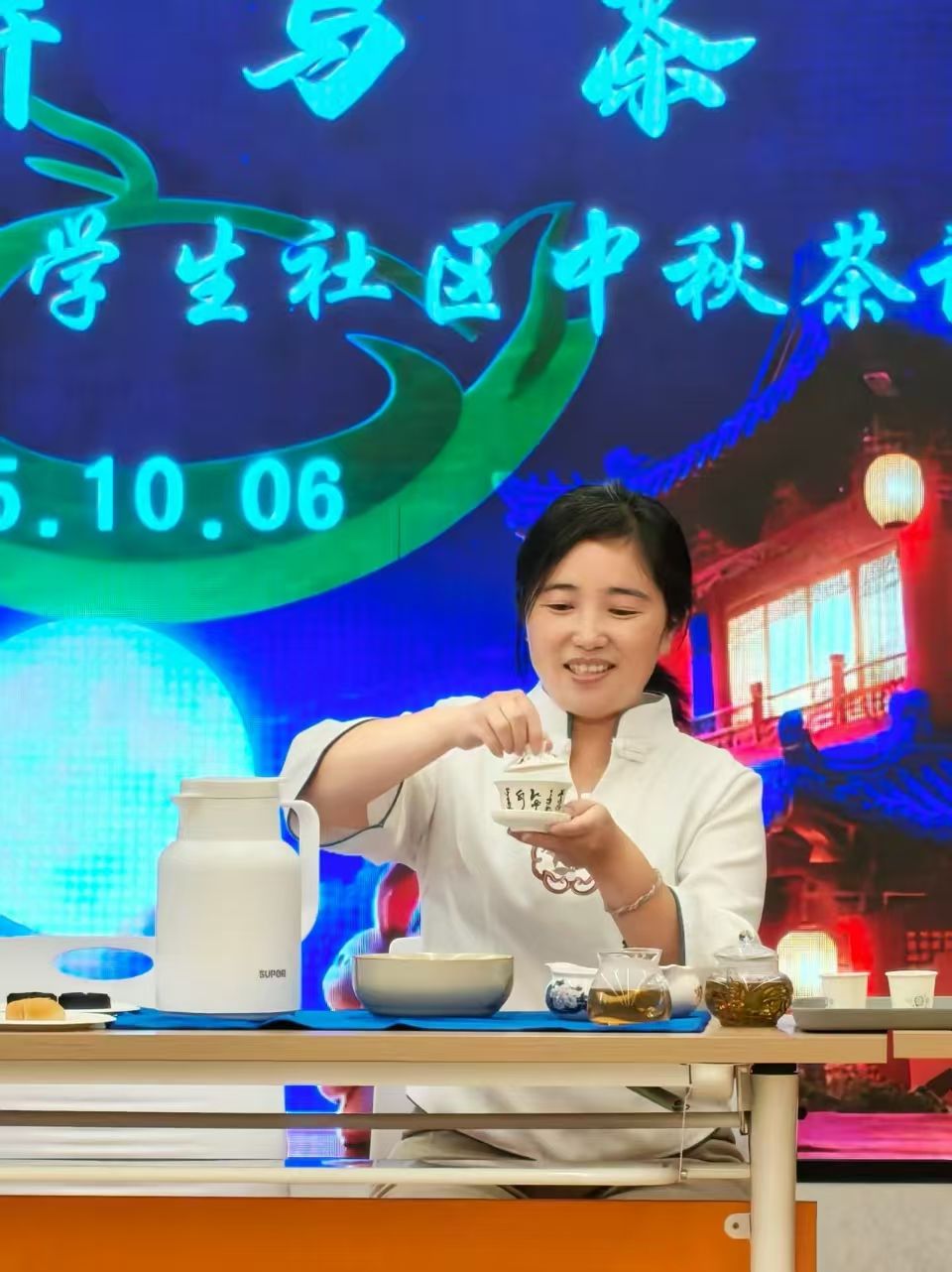 活动在悠扬的传统乐曲中拉开序幕,张瑞萍老师首先为同学们讲解了中华茶文化的深厚底蕴,并现场演示了规范的茶艺流程。随后,同学们在张老师的指导下亲手泡制香茗,以一杯清茶表达对祖国的深情祝福,既融合了中秋团圆的意蕴,又传递了国庆的喜悦与自豪。