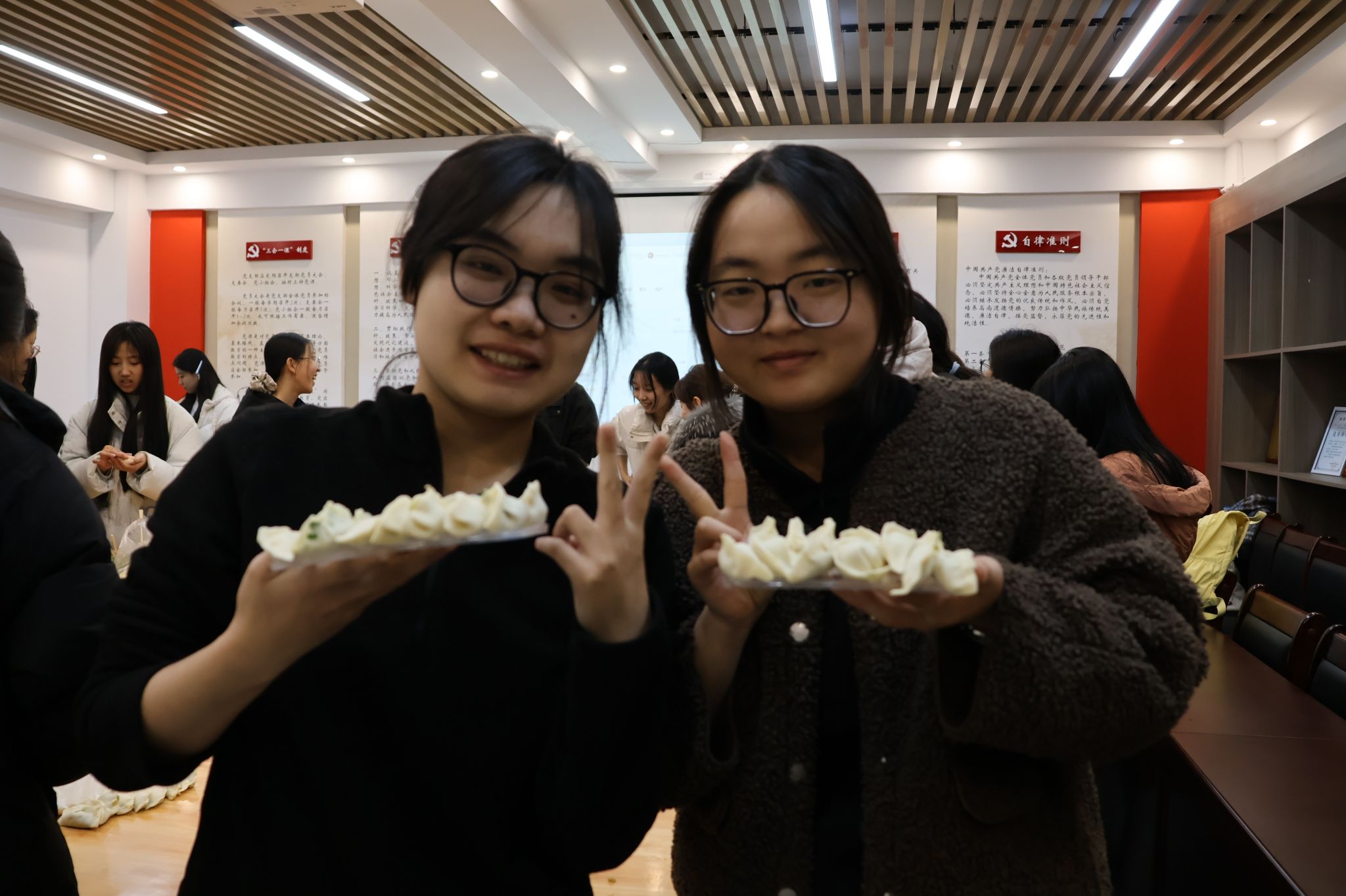 活动期间,育人导师(辅导员)认真指导包饺子技艺,与学生深入交流学习生活情况;同学们充分发挥创意,制作出元宝饺、柳叶饺等多种造型;生活导师提前做好煮制准备,全程保障,细致满足个性化需求。现场组织有序,分工明确,洋溢着欢乐祥和的氛围。