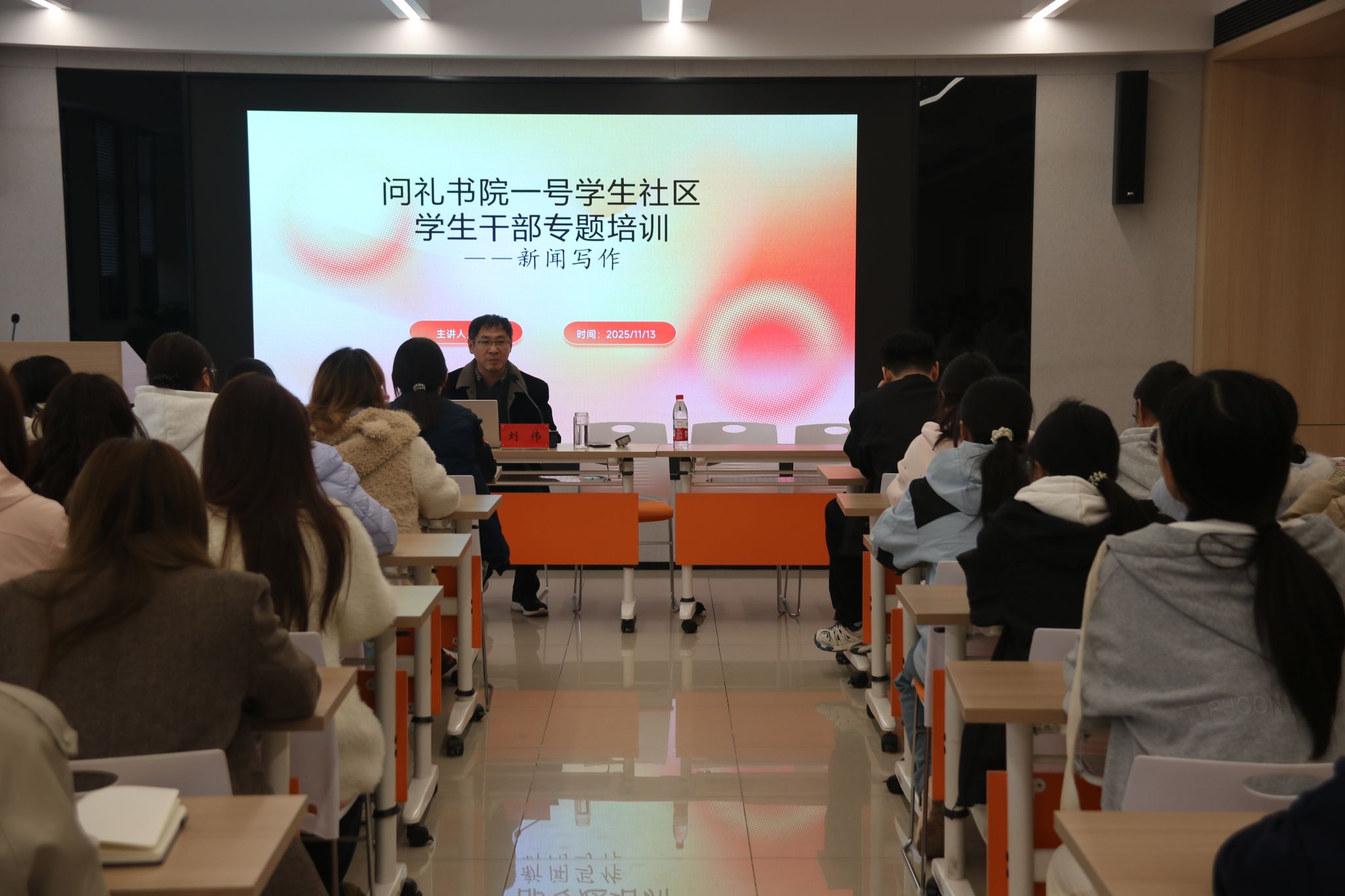 11月13日下午,问礼书院一号学生社区在问礼大讲堂举办新闻写作专题培训。本次培训由社区院长刘伟担任主讲人,育人导师(辅导员)代表及从事宣传工作的学生干部参加。