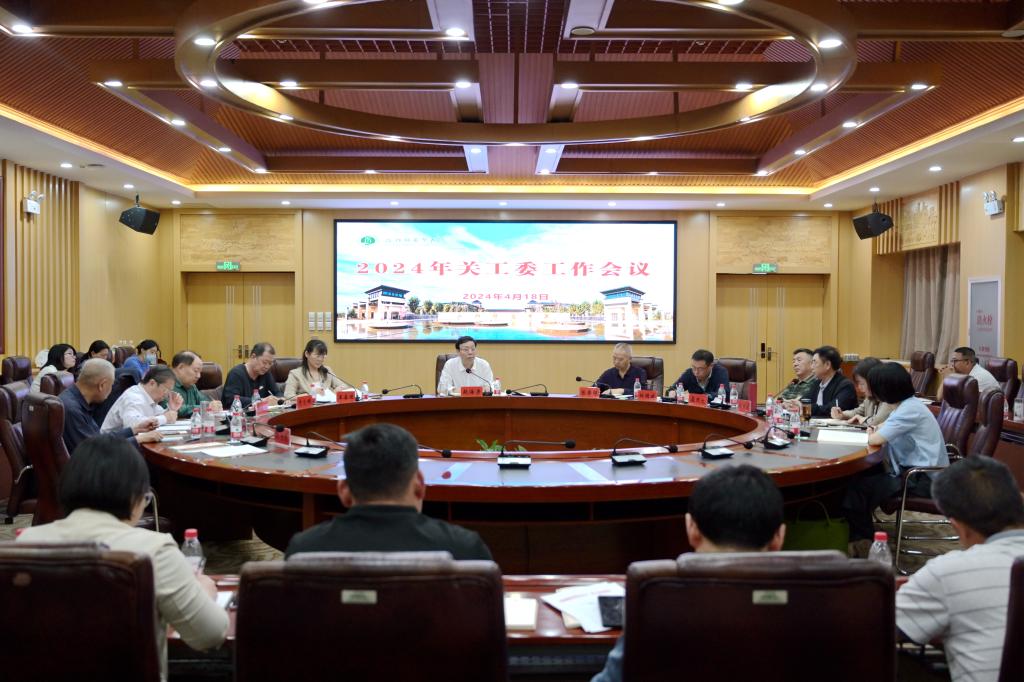 4月18日,我校在成均楼B301会议室召开2024年关工委工作会议。校党委副书记、校关工委主任赵海彦,校关工委常务副主任张辛卯,离退休工作处党委书记、校关工委秘书长王春丽,离退休工作处处长林国建,校关工委委员和各教学单位关工委负责人参加会议。会议由王春丽主持。