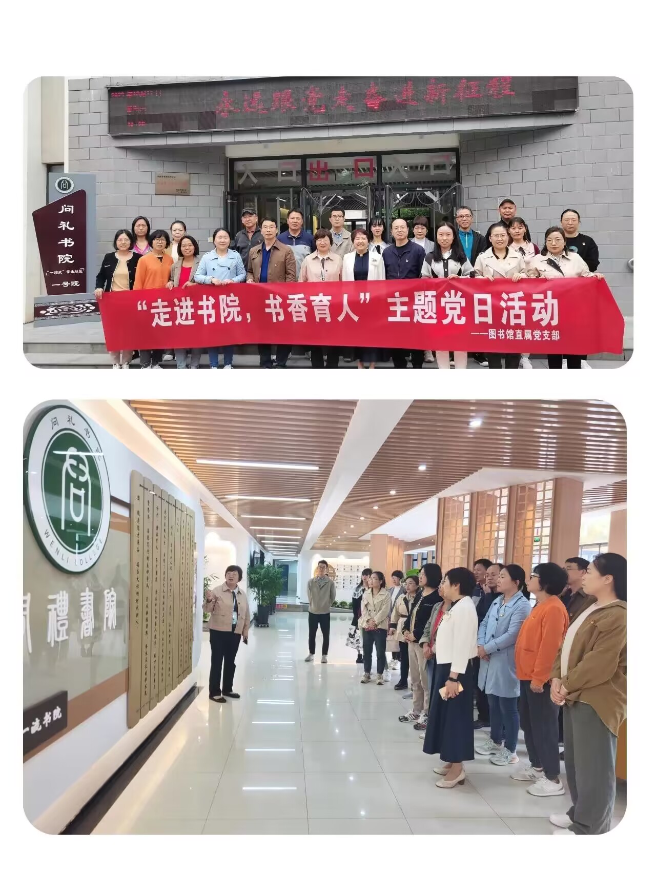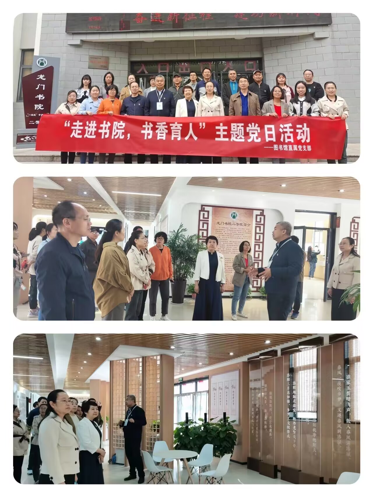 为深入贯彻落实习近平新时代中国特色社会主义思想和党的二十大精神,全面了解书院制育人模式和“一站式”学生社区建设情况,推进书香育人新格局与新合力的形成,10月12日下午,图书馆直属党支部组织全体党员干部及部分职工,走进问礼书院、龙门书院、立雪书院、开阳书院和鸿都书院,开展“走进书院,书香育人”主题党日活动。