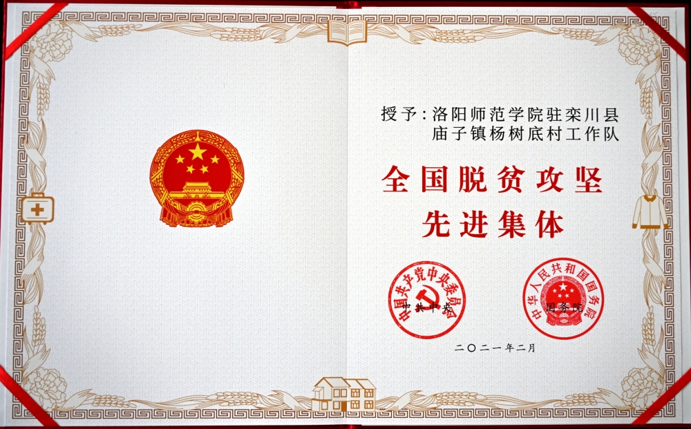 大会对在打赢脱贫攻坚战中作出突出贡献的个人和集体进行了表彰,我校驻栾川县庙子镇杨树底村工作队获评全国脱贫攻坚先进集体,是省内高校中唯一获此殊荣的驻村工作队。