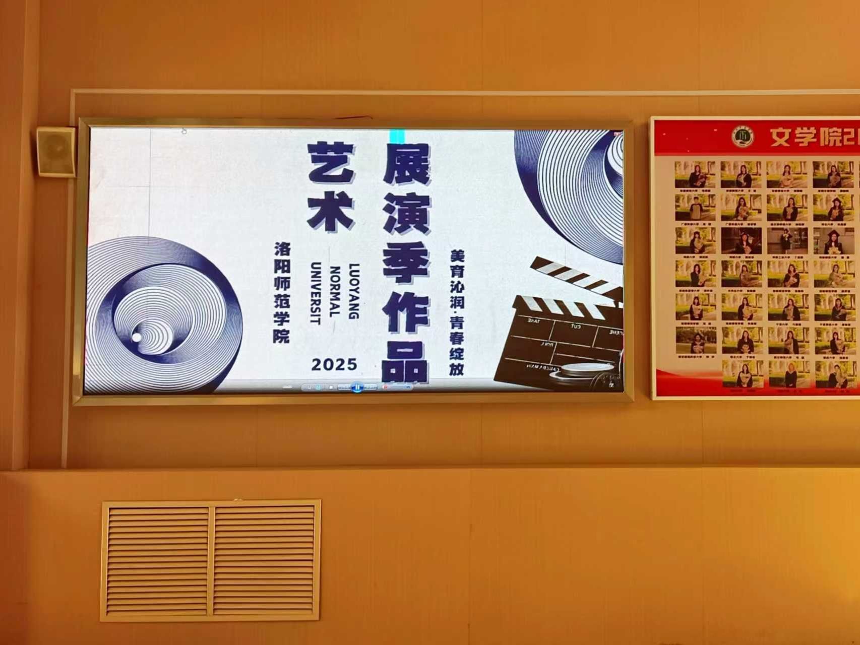 戏剧影视文学专业视听作品在学院一楼大厅电子屏循环播放展示,共展出摄影作品、纪录片、故事片及微电影等作品50余件。这些作品聚焦社会生活、校园百态与青春梦想,镜头语言鲜活,叙事风格多样,既展现学生敏锐艺术洞察力和娴熟专业技能,也体现出当代青年关注时代、思考人生的责任担当。
