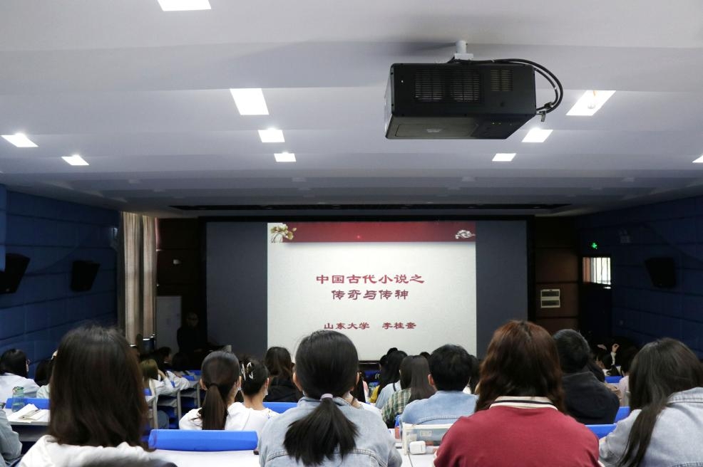 4月15日上午,文学院于A8-102举行了关于中国古代小说的专题讲座。本次讲座由山东大学特聘教授、博士生导师、兼任中国水浒学会副会长李桂奎主讲。文学院院长王建国主持,文学院副院长于涌、李清华、柯混瀚等数位老师以及各年级学生参加。