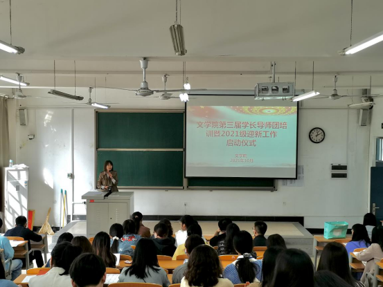 10月9日下午,文学院在A8-101召开第三届学长导师团培训暨迎新启动会。会议由文学院党委组织员张曼主持,文学院党委副书记张方方出席,辅导员陈晓于、赵子晗和第三届学长导师团全体成员参加。