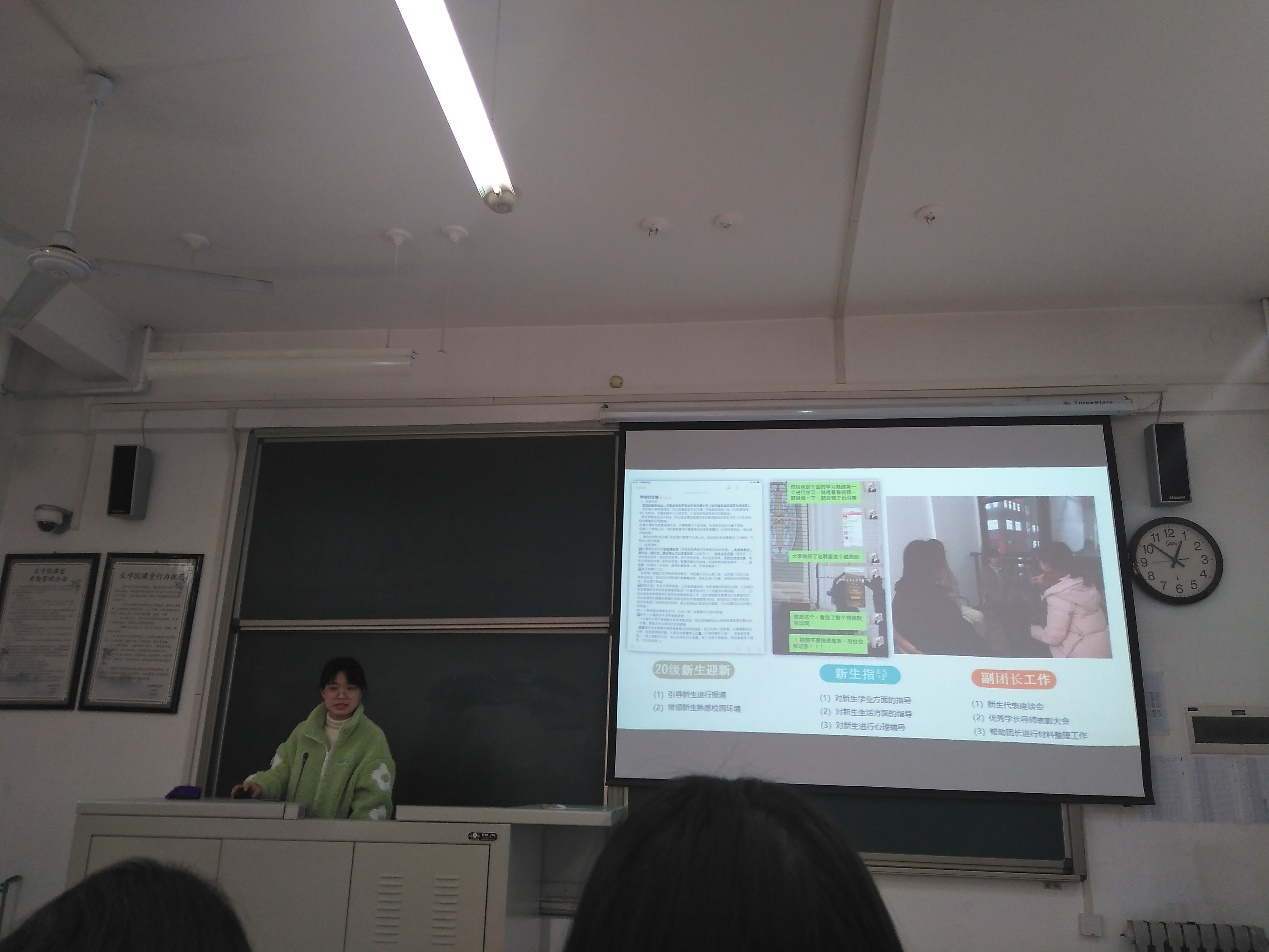 会上第二届学长导师团团长姜昕妍首先进行述职,她分别从工作内容及成绩总结与工作反思两方面进行述职,介绍了第二届学长导师团一年来所做的主要工作以及存在的不足,为第三届学长导师团工作的开展提供了宝贵的经验。接着黎乐怡、吉咏琪、范乔雨等学长导师分别结合自己一年来的工作进行了汇报和总结。一年来,学长导师们都能与所带学生积极沟通、相互交流、了解学习和生活等方面的情况,当好新生良师益友,做好思想引领、做好学业引导、做好纪律提醒,较好的完成了学长导师的任务。