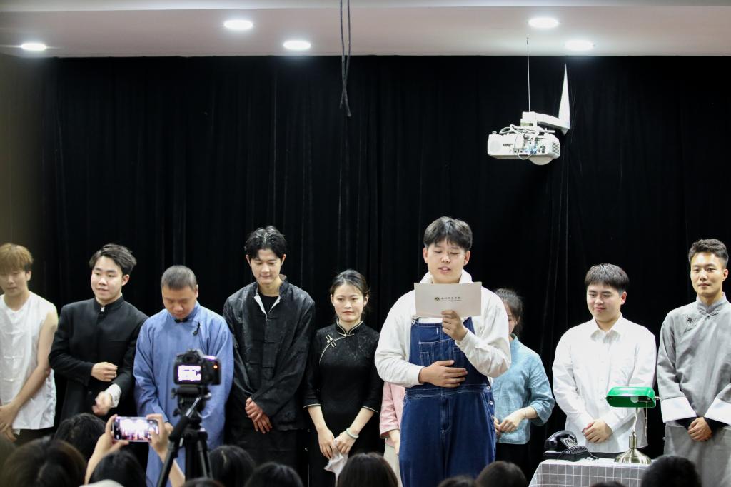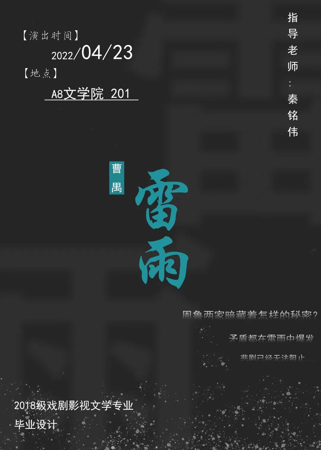 2022年4月23日晚18:30在文学院201剧场演出实验室圆满落幕,毕业大戏汇报演出采用了线上、线下结合的双线模式,线下观众座无虚席,线上则最大限度地吸引到不能到场的戏剧爱好者,双线联动让人们感受来自戏剧舞台和戏剧文化的魅力。