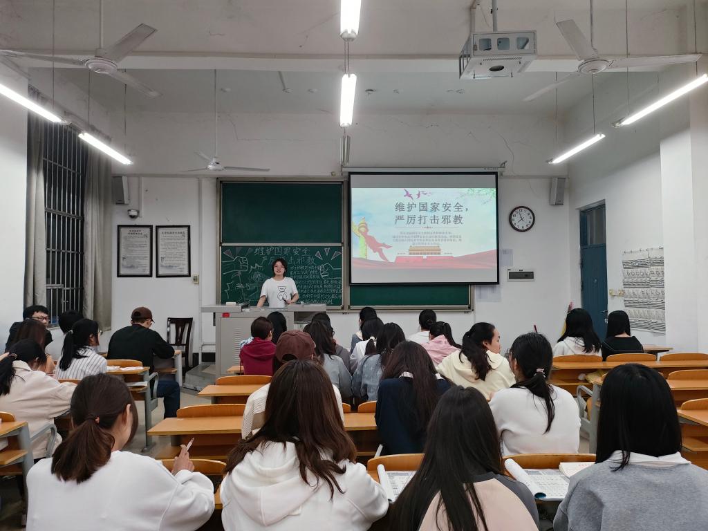 开展理论宣讲,增强教育警示意识。文学院组织辅导员开展以国家安全为主题的理论宣讲活动。辅导员赵子晗以《习近平新时代中国特色社会主义思想学习纲要之国家安全篇》为重点,教育引导学生坚持总体国家安全观,更坚决、更有效地维护好、捍卫好国家利益,实现国家长治久安。