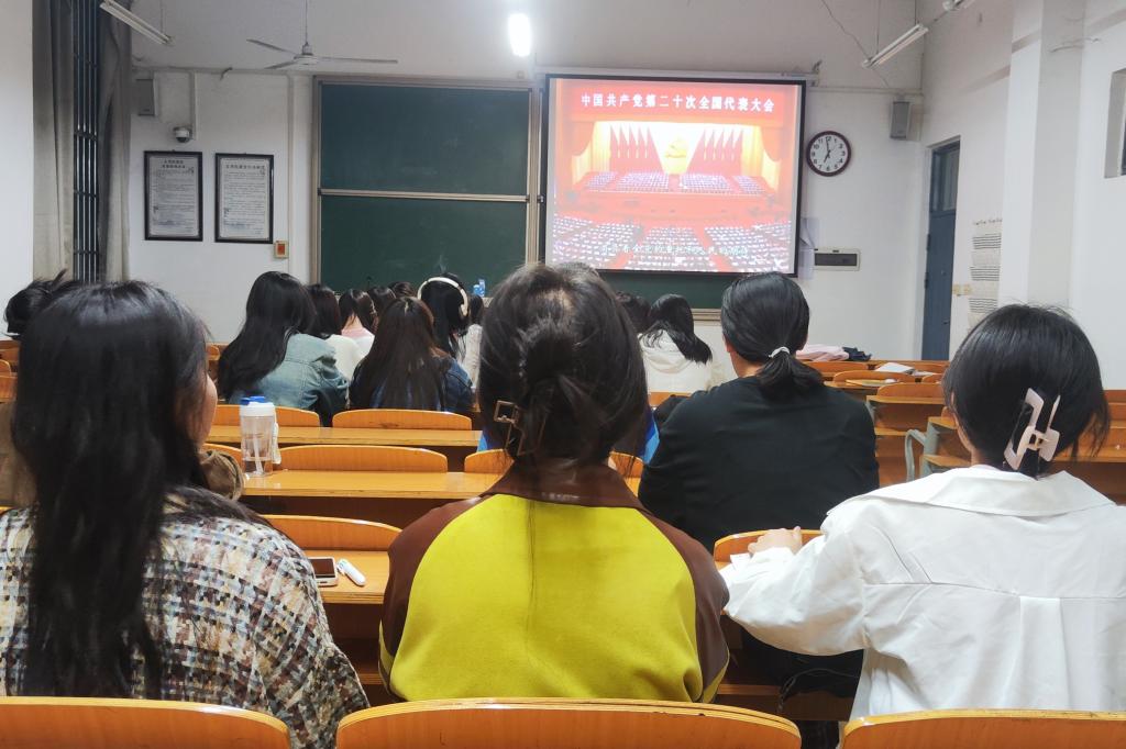 为深入开展学习贯彻习近平新时代中国特色社会主义思想主题教育,进一步贯彻落实党的二十大精神,5月25日晚,文学院党委组织学生党员等在学院教室观看文学院教师创作的朗诵作品《党的二十大之歌》。