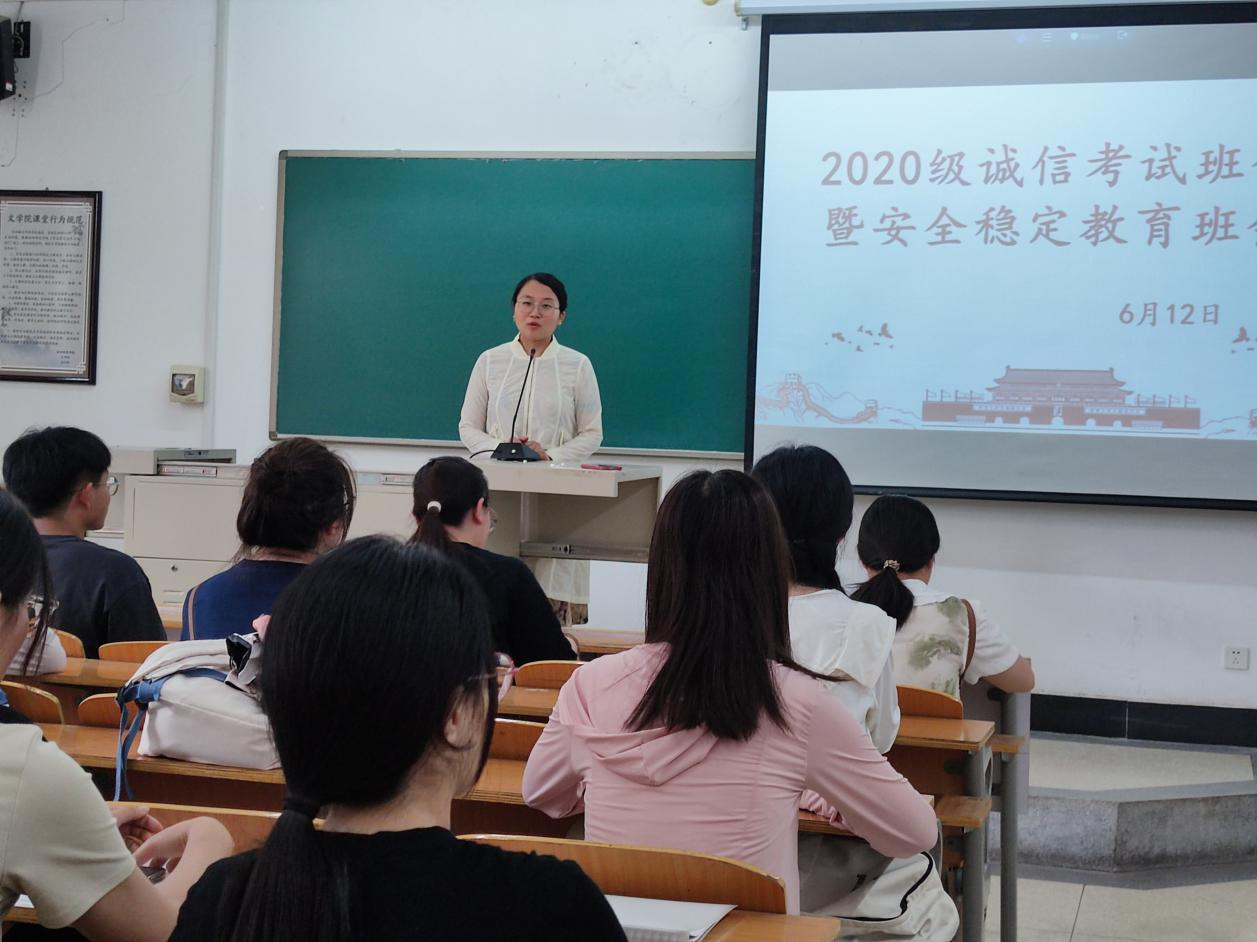 为落实立德树人根本任务,加强学风、考风建设和安全教育,增强同学们诚信考试的意识,同时,推进暑期安全教育工作,进一步增强大学生的安全防范意识,预防学生安全事故的发生。文学院组织各班级于6月11日-19日召开“诚信考试暨暑期安全教育”主题班会。班会由各年级辅导员、班长主持。
