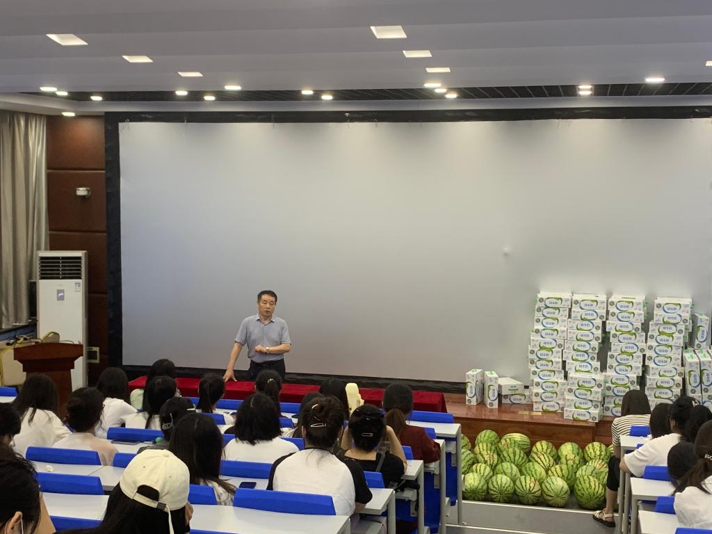 炎暑之际,为鼓励暑假期间奋战考研的文学院学子们,7月29日下午,文学院院长王建国,文学院党委书记张方方,文学院副院长于涌、李亚,文学院党委副书记张曼以及辅导员陈晓于在A8-102教室为考研留校学子送来关心慰问。