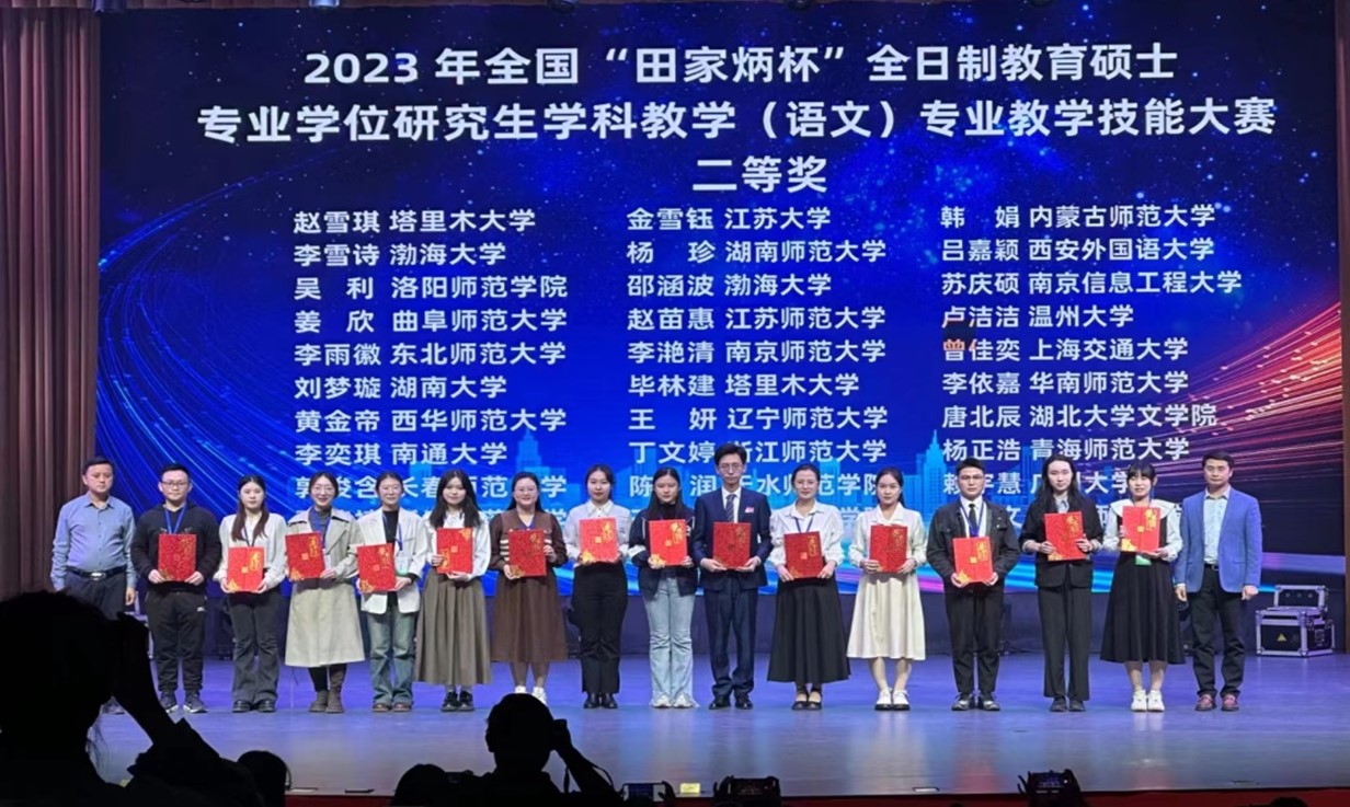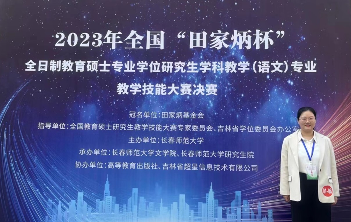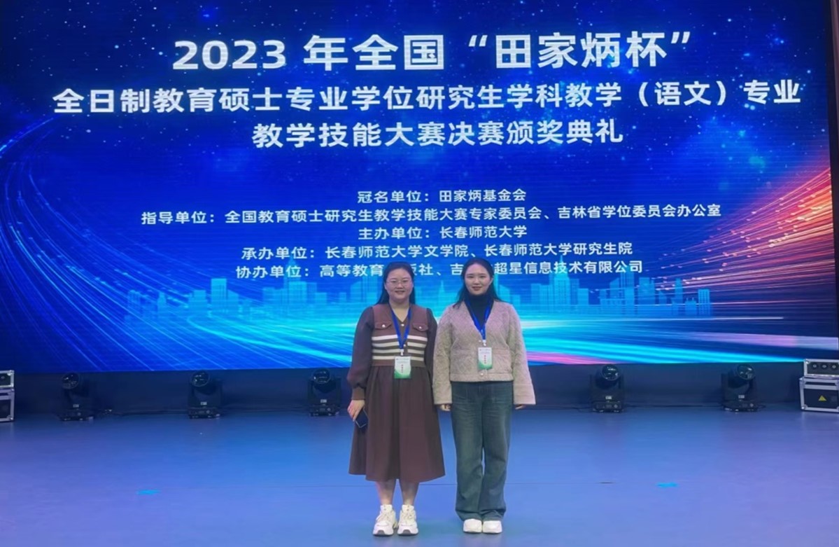 10月13日至16日,全国“田家炳杯”全日制教育硕士专业学位研究生学科教学(语文)专业教学技能大赛决赛落下帷幕。本次决赛由长春师范大学主办,长春师范大学文学院和长春师范大学研究生院承办。我院研究生吴利同学在肖娜老师的悉心指导下,凭借优秀的教学能力和良好的现场发挥,脱颖而出,荣获全国研究生讲课二等奖,肖娜老师荣获全国“优秀指导教师”奖。